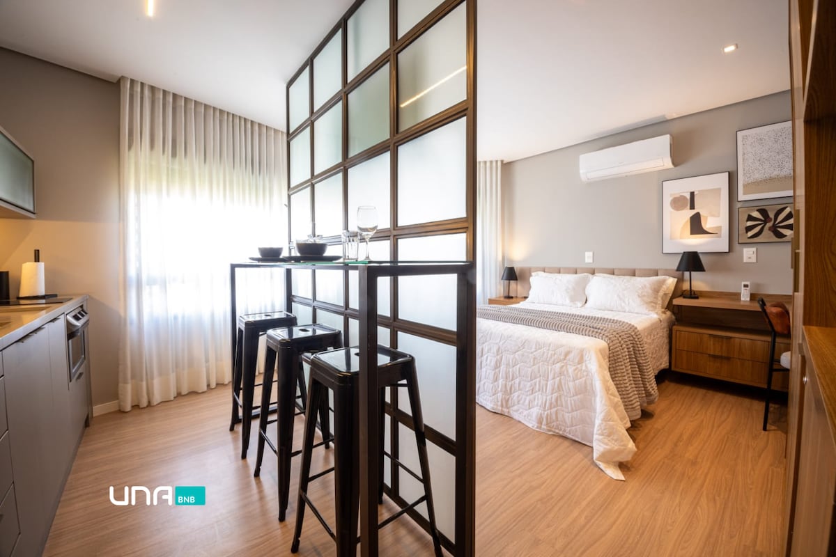 Studio ở vị trí tốt nhất tại Pelotas. Có một kỳ nghỉ tuyệt vời tại một nơi đầy đủ, ấm cúng tại Công viên Una, một trong những tấm bưu thiếp Pelotas. Bạn thấy rồi ! ❤️🍷🍽️😁 Tiện nghi: - Cấu trúc mới và tinh tế cho sự dễ chịu - Trò chơi khăn tắm - Máy sấy tóc - Bàn làm việc - Chuồng đầy đủ - Nồi chiên không khí, - Bếp từ,nồi, máy nướng bánh mì,lò vi sóng Khu dã ngoại dã ngoại dã ngoại -Wi-Fi - SmartTV 43" Lg - Điều hòa nhiệt độ nóng lạnh - Portaria24h