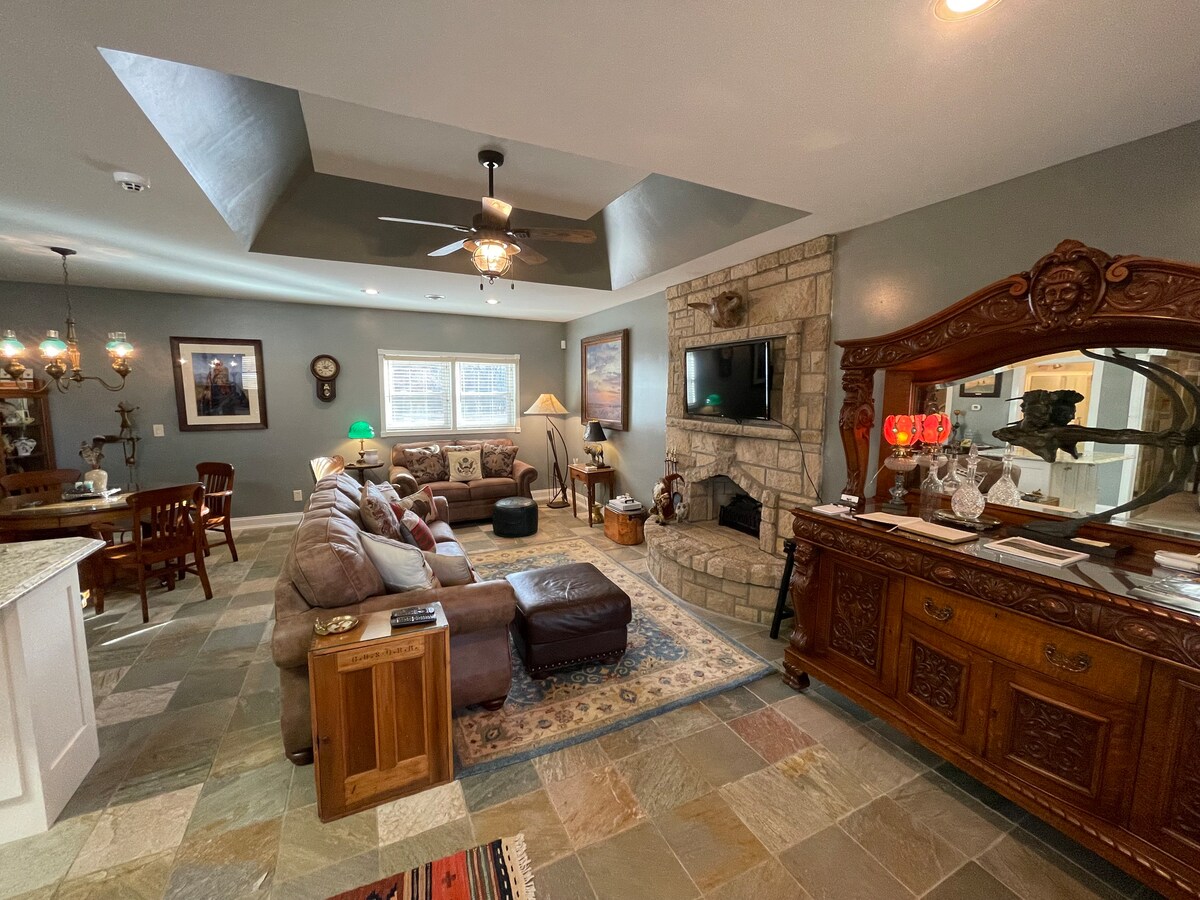 Nằm rất xa trong Tallgrass Prairie của % {line Hills, Prairie Home cung cấp tầm nhìn rộng lớn và vô tận từ đỉnh đồi riêng. Tất cả các phòng trong nhà, được xây dựng bởi các thợ thủ công địa phương từ các khối đá vôi bản địa, có cửa sổ lớn đóng khung nghệ thuật tự nhiên của thảo nguyên. Đồ gỗ thủ công bổ sung cho đồ đá nội thất rộng rãi. Trần nhà cao vút cung cấp phông nền cho nghệ thuật gốc do chủ nhà thu thập. Và mọi nơi bạn nhìn, khung cảnh sẽ khiến bạn nghẹt thở.