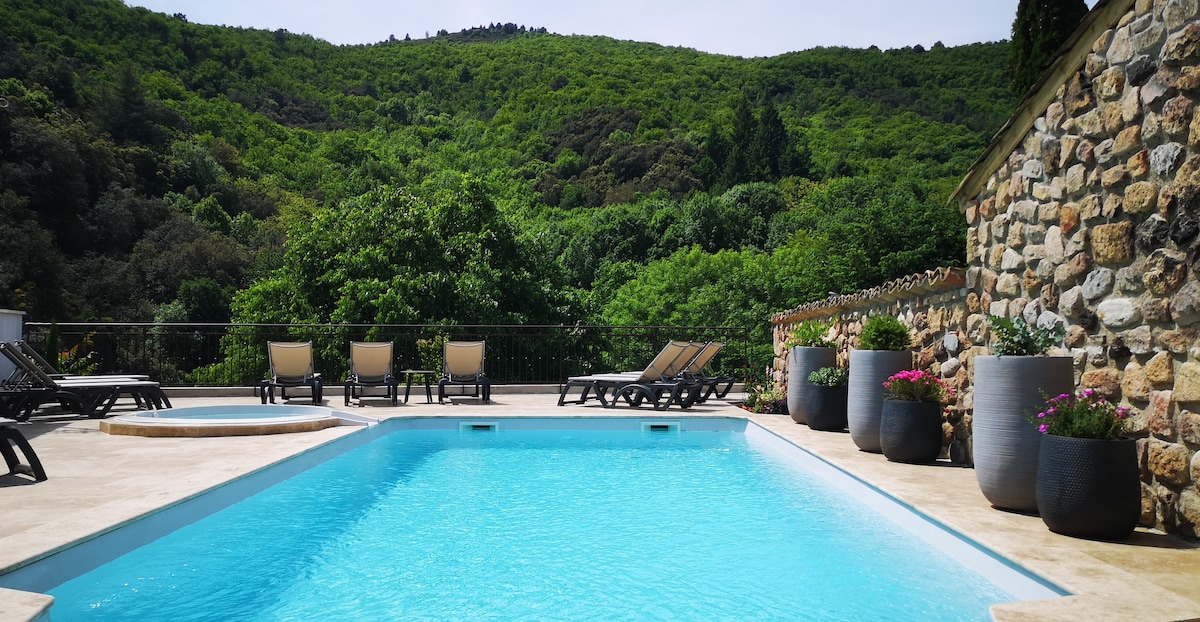 Fully air-conditioned cottage located at the gates of the Cévennes has its private outdoor swimming pool (open and heated from April to October) and its private covered SPA open all year round. Bed, toilet and table linens are provided. Close to hiking trails to discover the Cévennes. The place is ideal for weekends or stays in the area with family, couple, holidays or business trips.