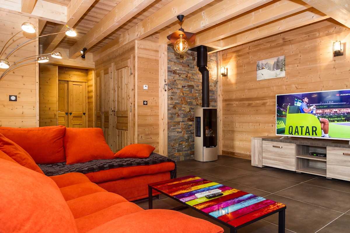 10 MINUTES A PIED DEP LINGA _ PAS BESOIN VEHICULE Dans ce chalet récent vous retrouverez tout le confort nécessaire pour passer un agréable séjour! La grande cuisine toute équipée est ouverte sur le séjour (où il n'y a pas de couchage) seulement une très grande pièce à vivre. Vous pourrez profiter pleinement du jacuzzi, de la salle de sport, du sauna et de la terrasse. Pour les skieurs vous rejoindrez les pistes en 10 minutes à pied, ou en 3 minutes en navettes (l'arrêt est devant le chalet).