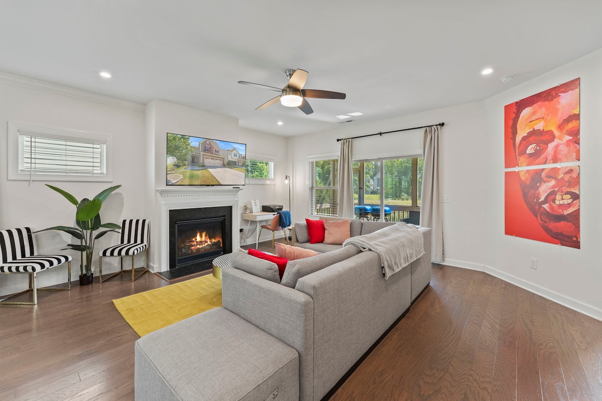 Chốn nghỉ ngơi Luxe ở Cary | Chỗ ngủ cho 12 người | Lò đốt lửa