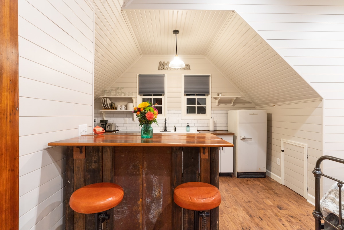 Nhà nghỉ thôn dã quyến rũ của khách ở trung tâm Watkinsville, chỉ cách Athens, Georgia vài dặm. Một kỳ nghỉ tuyệt vời với đầy đủ các chi tiết độc đáo và quyến rũ. Thư giãn ở xích đu ở hiên trước hoặc trong hiên riêng với bồn tắm nước nóng. Bên trong là trần mái vòm 18 ft với dầm gỗ thô ráp, cửa sổ cổ, sàn gỗ cứng và chú ý đến từng chi tiết. Bếp được trang bị đẹp với các thiết bị có kích thước đầy đủ và chỗ ngồi bar. Căn gác ngủ có sự riêng tư và tầm nhìn tuyệt vời với giường queen và rất nhiều không gian lưu trữ.