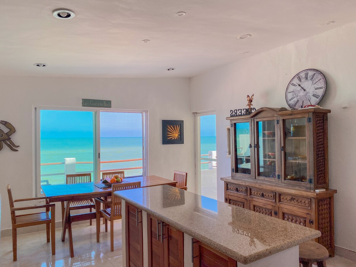 Welcome to our beachfront villa Casa Kyma in San Crisanto (50 min. from Merida, Yucatan, Mexico). You will have the entire 3 bedrooms villa with ocean views and unforgettable sunsets. Each space is thoughtfully designed in a style for your memorable stay. The villa can accommodate 6 adults, with kids sharing a bed with their parents at no extra charge. Inside the villa, there's a fully equipped kitchen, and outside, there's a BBQ area for some enjoyable outdoor grilling.