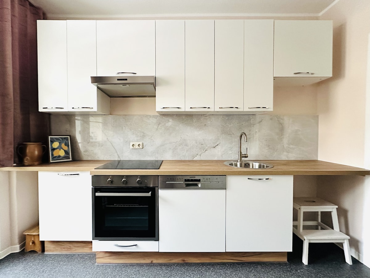 Căn hộ 2 phòng (50m²) được cải tạo hoàn toàn, mới được trang bị nội thất và nằm trên tầng 1 của biệt thự Art Nouveau, trong khu phố xinh đẹp của Kassberg. Cơ sở mua sắm và gian hàng trong nhà nằm ngay gần đó và có thể đi bộ trong 10 phút. Kết nối xe buýt và tàu hỏa rất tốt. - ban công lớn đẹp - phòng tắm có bồn tắm và vòi sen - chỗ để xe đạp có thể khóa ở tầng hầm - sofa giường mới (sức chứa tối đa 3 người)