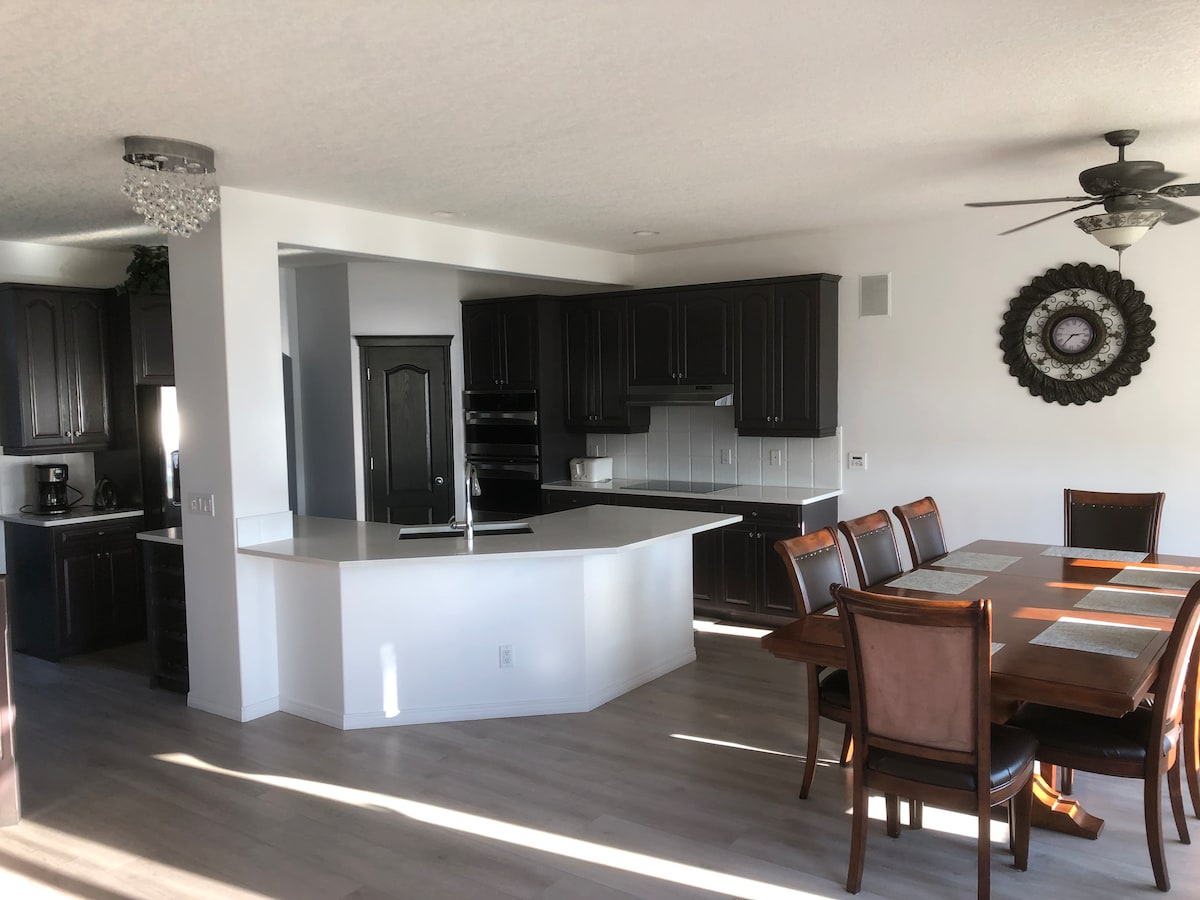 Tận hưởng chỗ ở thân thiện với gia đình với sân có hàng rào đầy đủ ở Chestermere. Các tính năng bao gồm phòng khách với TV thông minh 58", 2 khu vực ăn uống, phòng giặt ủi, bếp đầy đủ với máy rửa chén và phòng đựng thức ăn lớn, cộng với 4 phòng ngủ (2 phòng có phòng tắm khép kín và tủ quần áo đi bộ) ở tầng trên. Bếp có bếp, lò nướng, tủ lạnh với máy làm đá, lò vi sóng, quán cà phê dự trữ và đảo lớn. Cách Hồ Chestermere, đường mòn, nhà hàng và cửa hàng vài bước chân. Hoàn hảo cho các gia đình, nhóm lớn và những người yêu thích hoạt động ngoài trời quanh năm.