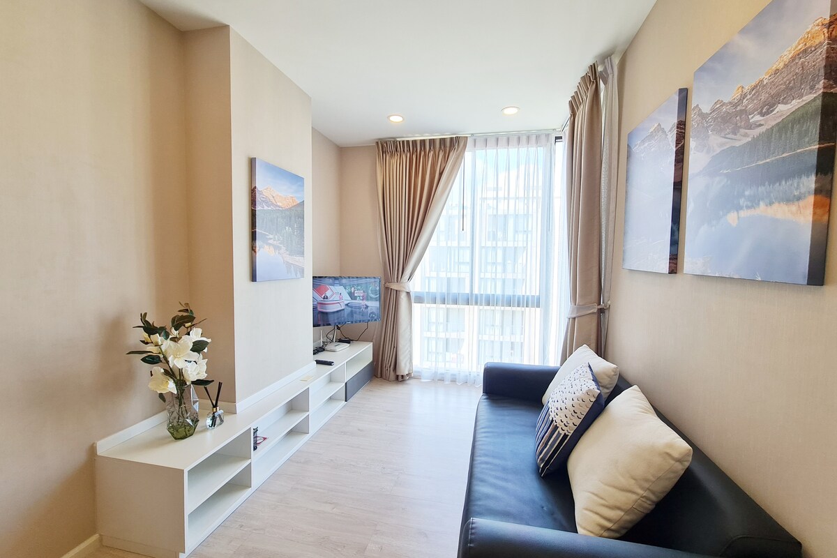 Chào mừng bạn đến với ngôi nhà phong cách của bạn ngay trung tâm Nimman. Căn hộ góc hiếm hoi, rộng 41 m² này ở tầng 6 mang đến sự thoải mái rộng rãi và thanh lịch sạch sẽ. Ngắm cảnh núi Doi Suthep ⛰ yên tĩnh lúc mặt trời lặn. Buổi tối mời bạn xem phim ấm cúng trên TV thông minh 60" LỚN với một rạp chiếu phim mini. Một giường sofa tiện lợi có thể chứa thêm hai khách để có chuyến đi gia đình suôn sẻ. One Nimman và Maya Mall cách đó vài phút đi bộ. Tận hưởng hồ bơi và các tiện nghi thể dục để có thời gian lưu trú hoàn chỉnh và thư giãn.