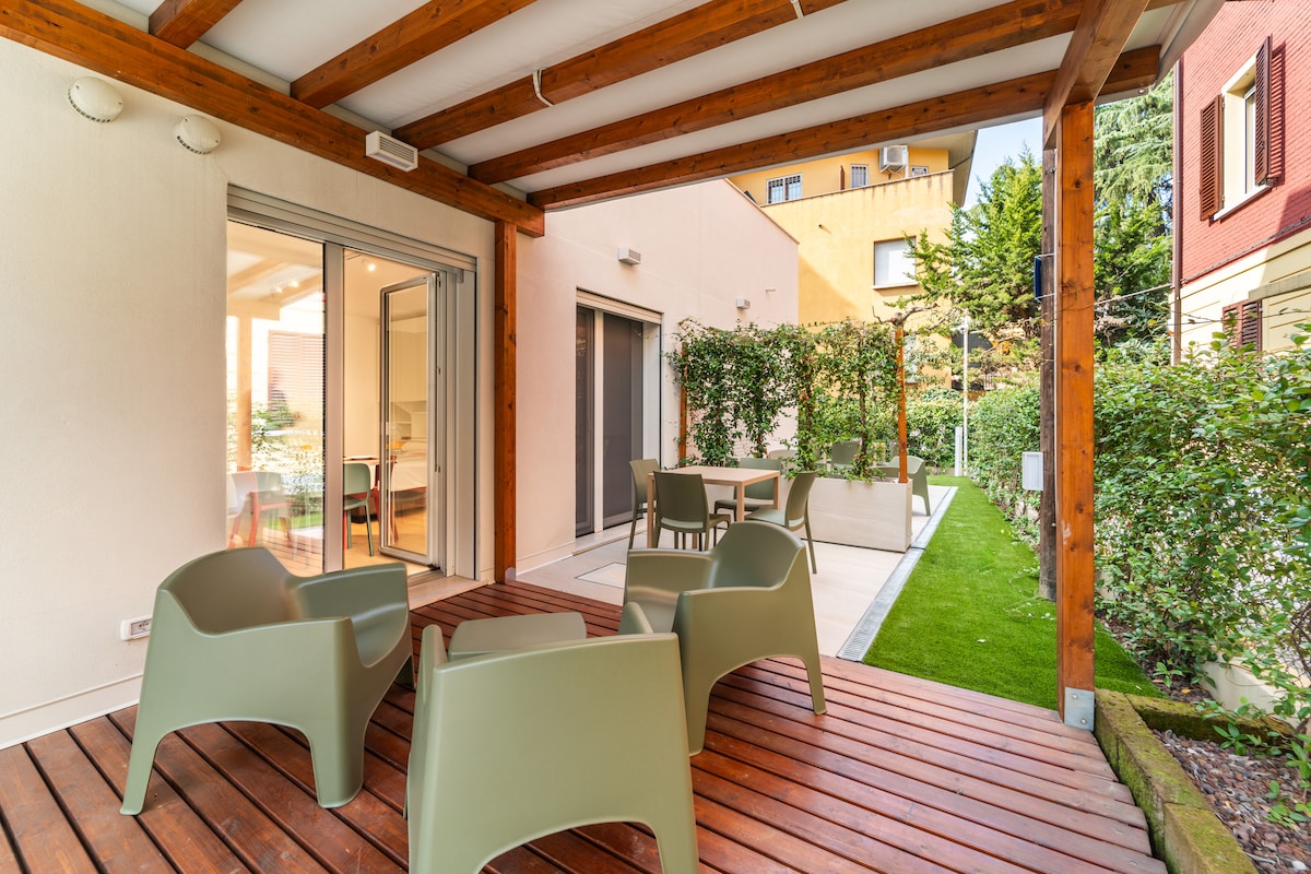 Vuoi una sistemazione che ti faccia iniziare la giornata col sorriso, sia che tu viaggi per lavoro o per piacere? Immagina di svegliarti in un ambiente moderno e luminoso, aprire le porte sul tuo patio privato e lasciare entrare la brezza del mattino. Un rifugio tranquillo, lontano dal caos ma vicino a tutto ciò che serve: in pochi minuti di autobus sei nel cuore di Bologna, mentre qui puoi goderti la privacy e il relax di una casa pensata per farti sentire a tuo agio.