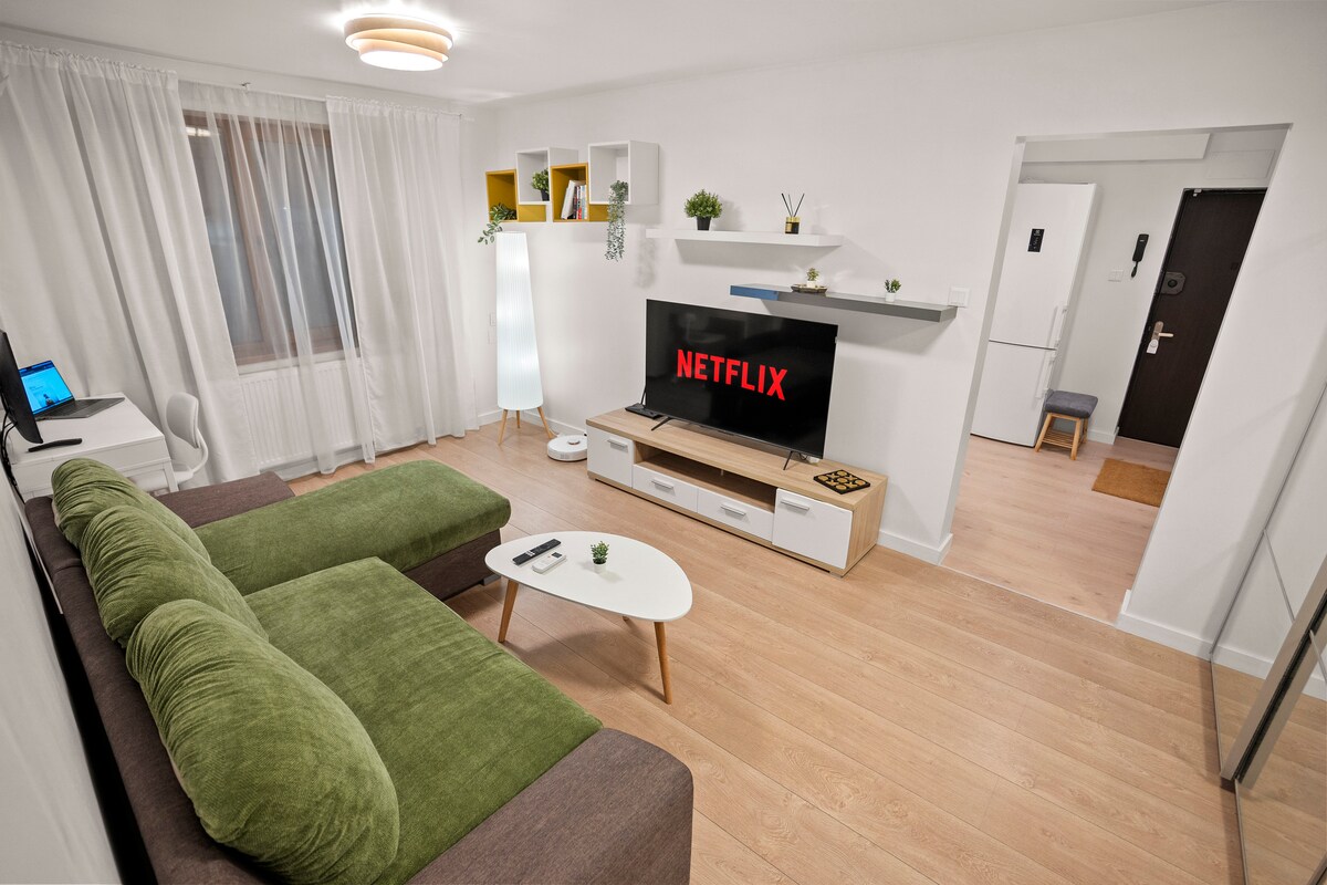 Welcome to your comfortable Bucharest base on Strada Laloșu, a spacious one-bedroom apartment near parks and great transport links. Tineretului and Carol Parks are a short walk away, and Sala Polivalentă is close for concerts and events. The M2 metro is minutes away, just 2 stops to Piața Unirii with a direct north connection. Ideal for city breaks, business trips, and longer stays, with a dedicated desk and external monitor, self check-in, and free parking.