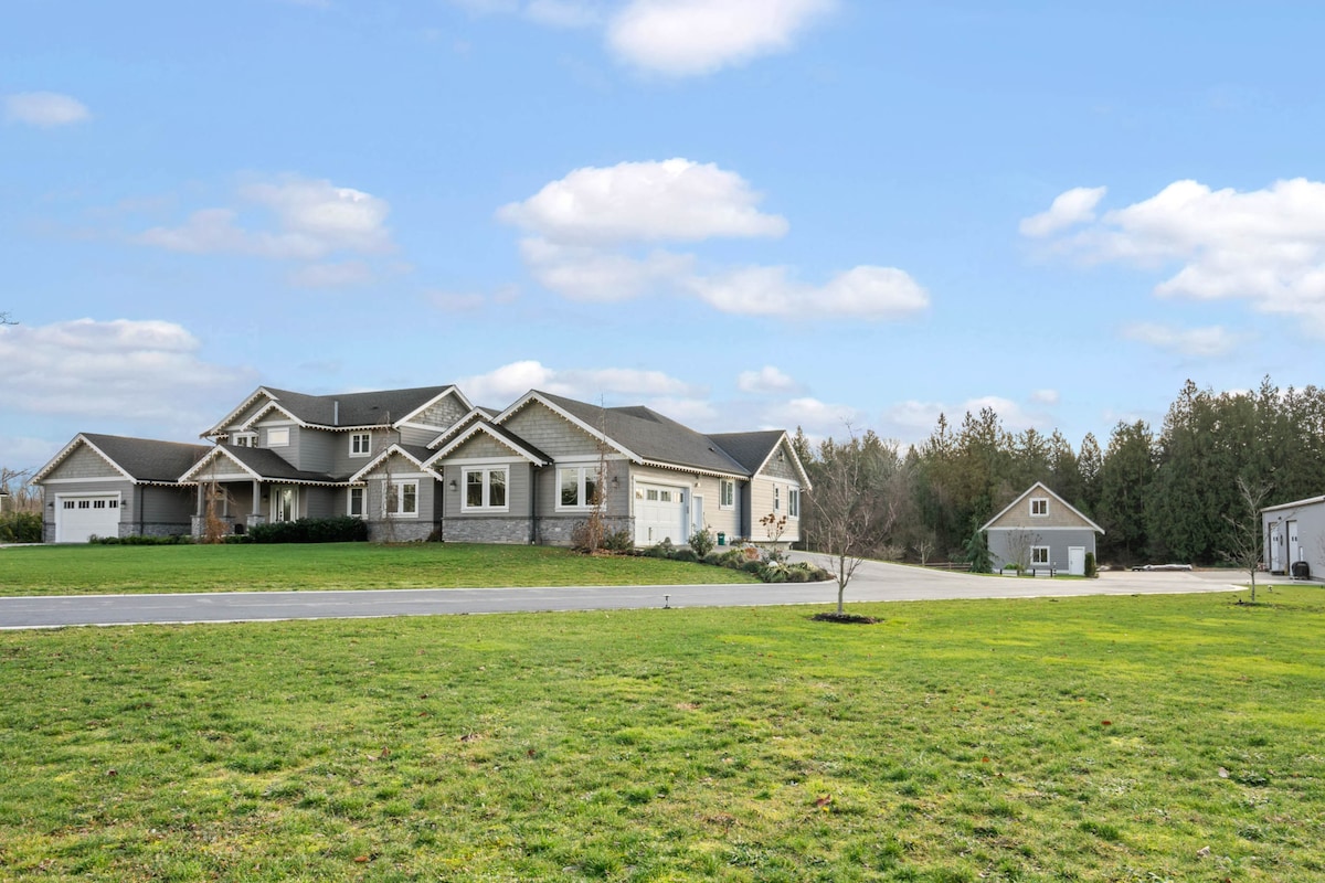 Ngôi nhà nông thôn đương đại quyến rũ. Nơi hoàn hảo để tránh xa thành phố. Yên tĩnh, ốc đảo, trên một thửa đất riêng rộng 10 mẫu Anh. Chỉ 3 phút đến Hwy 1 và 35 phút đến Vancouver BC. Gần Công viên cưỡi ngựa Thunderbird, trung tâm sự kiện Langley, Đại học Trinity Western. Chỗ ở có thể đi bộ tuyệt đẹp Xin lưu ý rằng không gian có hai phòng cỡ king lớn, một phòng đôi nhỏ và khi được yêu cầu thêm một phòng queen cho các nhóm trên 6 người. Nhà được trang trí đẹp mắt với sàn gỗ.