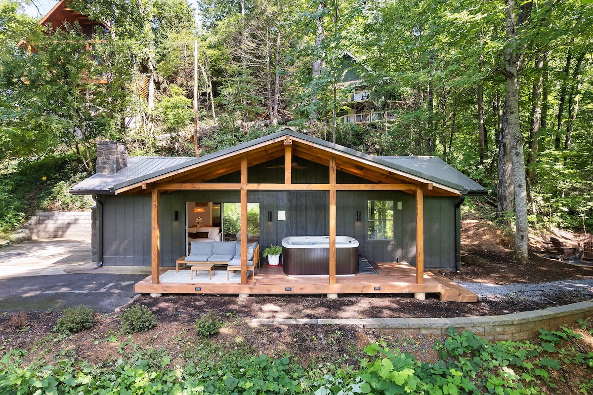 Modern w/ Rustic Undertones - Red Fox Den, một cabin theo phong cách hiện đại mới được xây dựng nằm trong Cộng đồng Cobbly Nob. - Phòng có giường cỡ King ở tầng chính và 2 phòng Queen ở tầng dưới, tất cả đều có phòng tắm riêng. - Trần 14 ft trong phòng khách chính, phòng ngủ chính và phòng ăn - Chỉ cách trung tâm thành phố Gatlinburg 13 dặm, cộng đồng mang đến sự cân bằng hoàn hảo giữa sự tiện lợi và riêng tư. - Căn hộ thuận tiện, bãi đỗ xe trải nhựa. Tầm nhìn tuyệt vời