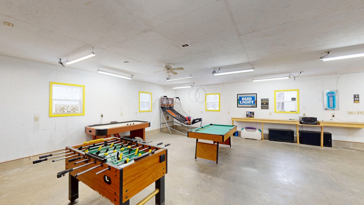 Ngôi nhà ven hồ tuyệt đẹp này có tầm nhìn tuyệt đẹp ra mặt nước, hoàng hôn ngoạn mục và rất nhiều không gian để tụ tập hoặc trải ra. 5 BD/4 BA. Ngoài trời, sàn lớn, chỗ ngồi ăn uống và trò chuyện đều được bố trí sẵn sàng. Một bến tàu tổ chức tiệc XL, để tắm nắng,câu cá và tụ tập bên hồ. Một bục bơi nổi, thuyền kayak, ván chèo và xuồng thêm vào các hoạt động! Để có thêm niềm vui, câu cá và du lịch trên biển, hãy hỏi về dịch vụ cho thuê Pontoon dễ dàng của chúng tôi. Bếp nướng gas, hố lửa và hoàng hôn sẽ kết thúc một ngày của bạn.