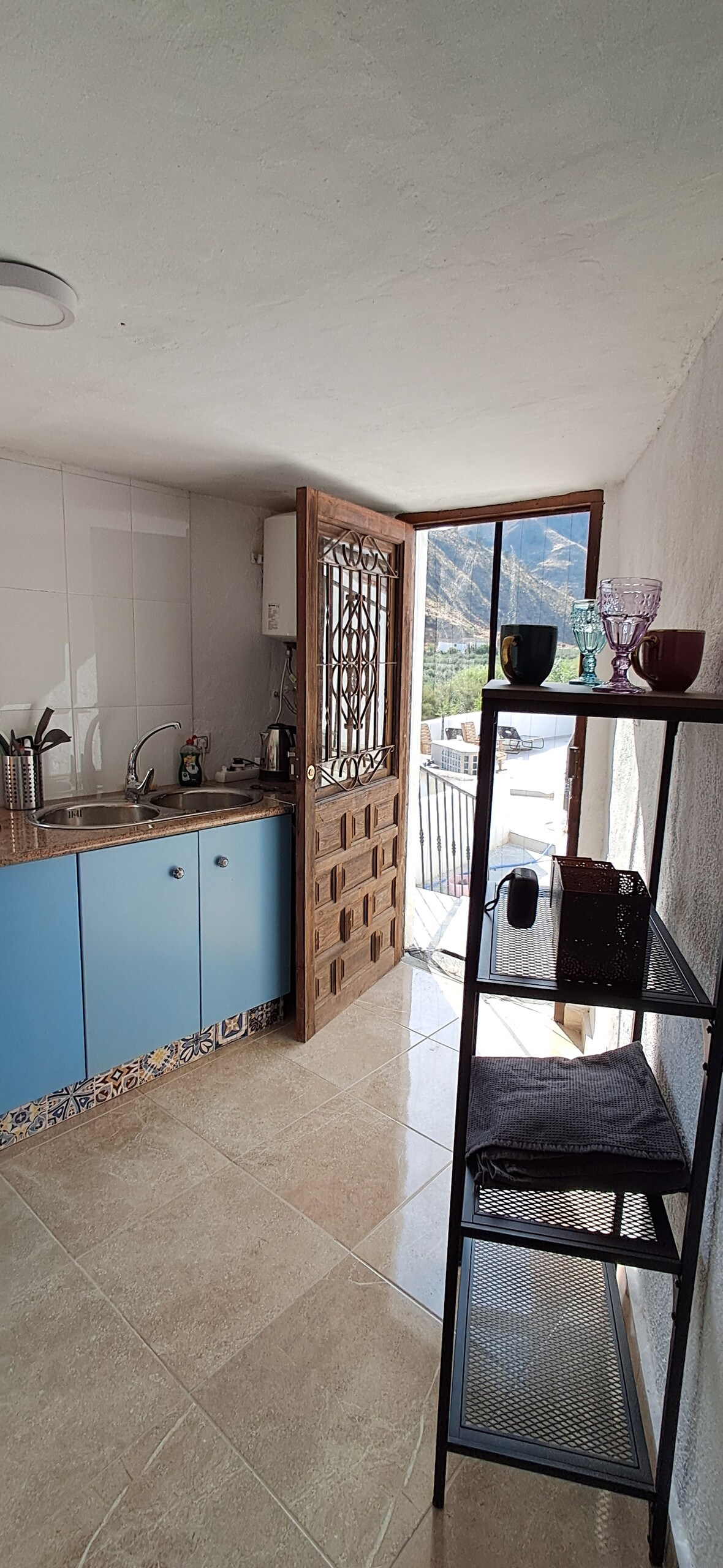 Winter (Nov-March) per month only. This cave sleeps max 3 people, there is a double bed (160x200) and a sofa bed.(100x 185). There is a fully equipped kitchen, a bathroom with shower, sink and toilet and a large bedroom with closet space. The entrance door and the window have mosquito screens. The cave is, even in summer, nice and cool inside. The property has a large swimming pool , garden with lots of chill out areas and a roof terrace for yoga. I live here all year with my 3 small dogs.