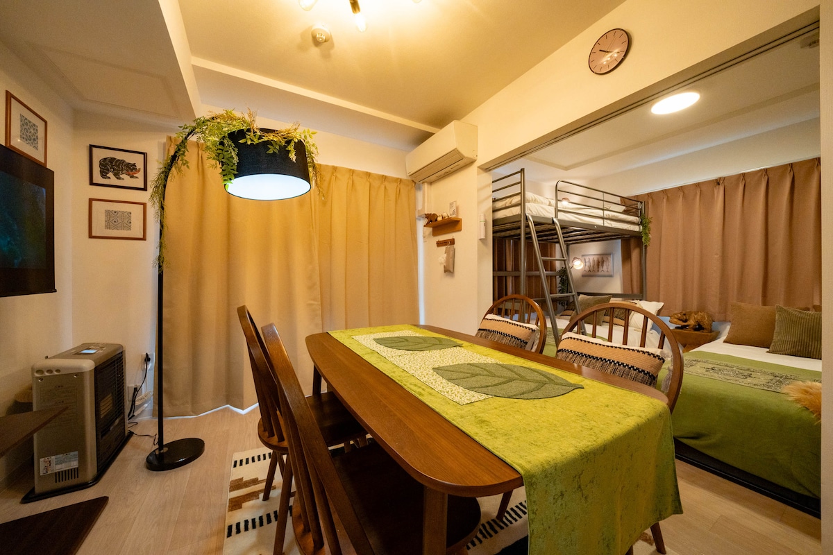 11 phút bằng ô tô từ sân bay CTS. 5 phút đi bộ từ Ga JR Chitose, 2 điểm dừng từ sân bay CTS trên Tuyến JR. Có chỗ đỗ xe trong vòng 2 phút đi bộ. Phòng ngủ 1 2 giường nửa phòng ngủ và 1 giường tầng lửng. 2 phút đi bộ đến nhà hàng gia đình gần nhất 5 5 phút đi bộ đến khu vực trung tâm thành phố, nơi bạn có thể thưởng thức các nhà hàng sushi, nhà hàng kiểu phương Tây và izakaya/ 4 phút đi bộ đến cửa hàng tiện lợi trước nhà ga. 8 phút đi bộ đến trung tâm mua sắm AEON Một điểm dừng chân tuyệt vời cho chuyến đi Hokkaido của bạn.
