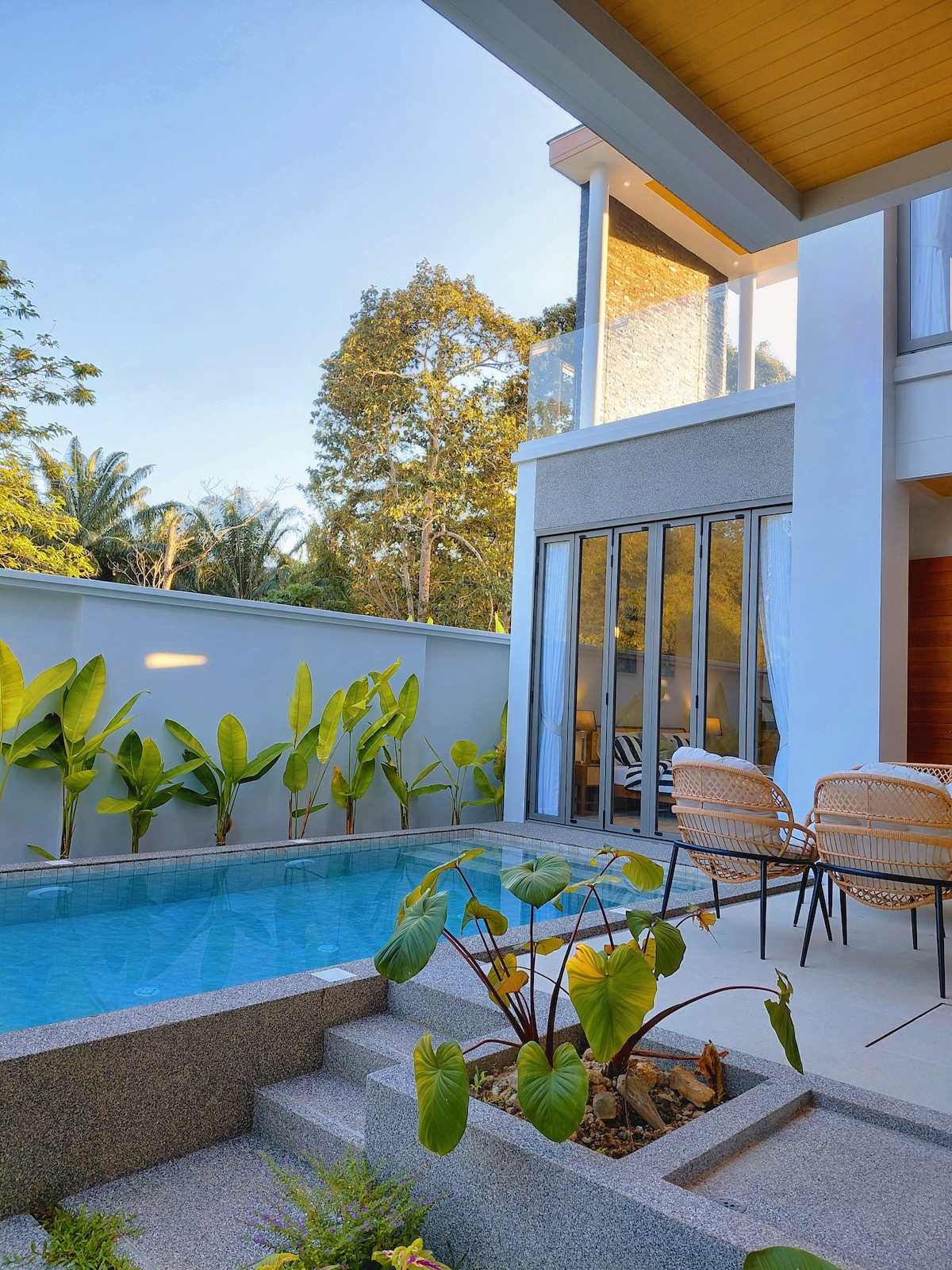Biệt thự có 3 phòng ngủ thoải mái, một phòng ngủ có lối đi thẳng ra hồ bơi, mỗi phòng có giường cỡ king 1,8m; phòng khách mở, cửa kính từ sàn đến trần kết nối sân vườn hồ bơi riêng, hoàn hảo cho các gia đình, bạn gái, anh em, cặp đôi đi nghỉ, nghỉ ngơi, cảm nhận bầu không khí nhiệt đới của Phuket. Biệt thự được trang bị nội thất mềm thiết kế hiện đại, điều hòa không khí, Wi-Fi tốc độ cao, khu vực ăn uống ngoài trời, bãi đậu xe có mái che riêng, TV thông minh lớn, an ninh 24 giờ, chỉ để làm cho kỳ nghỉ của bạn vô tư!