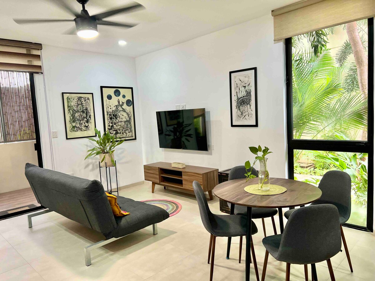 Căn hộ cao cấp hoàn toàn mới và được trang bị đầy đủ. 1 tầng. Nằm trong khu phố Cholul, rất gần các bệnh viện Starmedica và Faro cũng như một số trung tâm mua sắm ở khu vực phía bắc Merida. Khu vực an toàn. Nó có một căn phòng có giường cỡ King, tủ quần áo và võng. Trong phòng khách, ghế sofa chuyển thành giường đôi. Nó có một phòng ăn cho 4 người, điều hòa, nhà bếp được trang bị đầy đủ. Máy giặt, máy sấy và sân thượng cho các cuộc họp ở tầng 3. Wifi nhanh