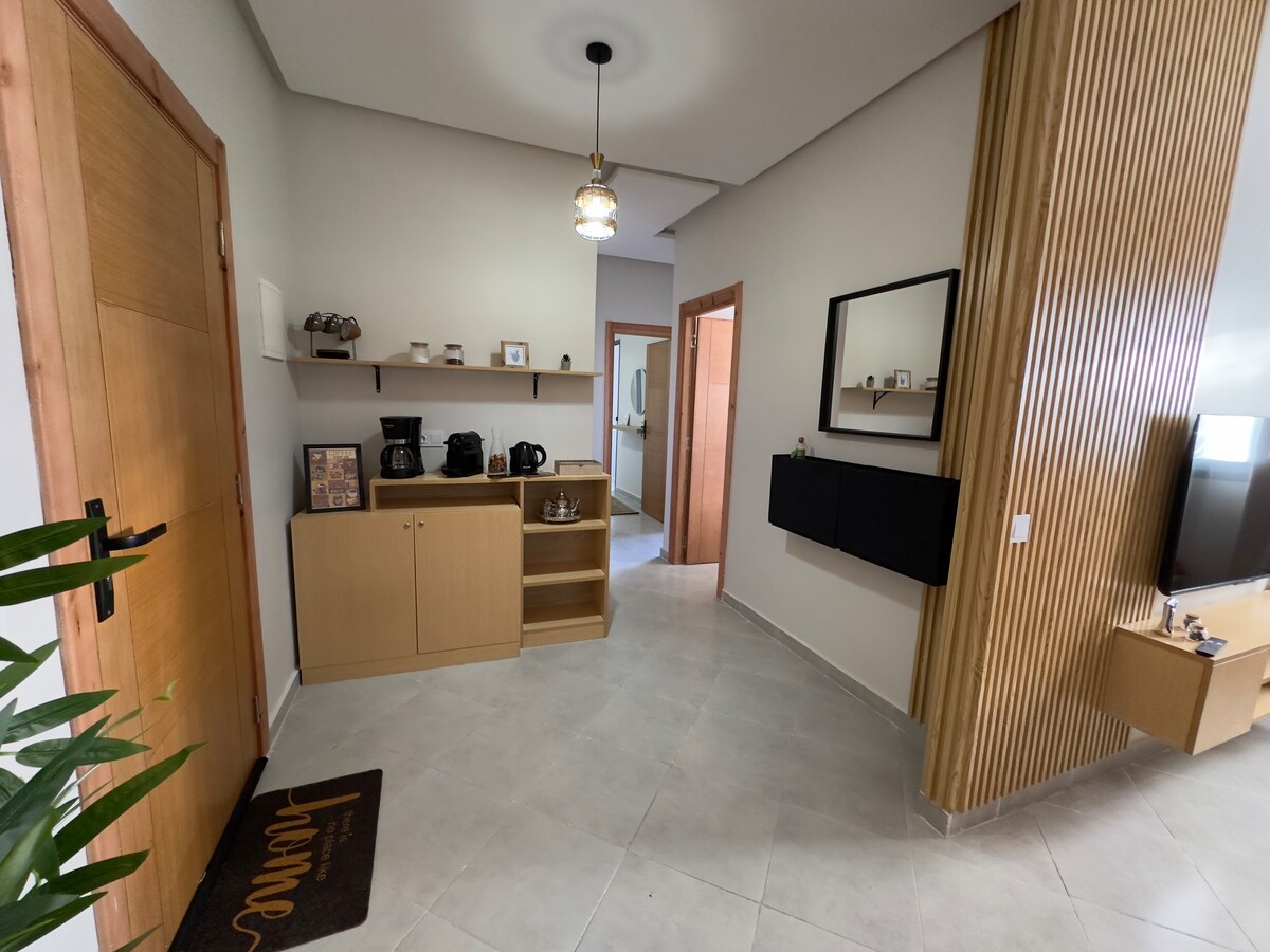 Căn hộ mới này mang đến một kỳ nghỉ hiện đại và thoải mái, lý tưởng cho khách tham dự Cúp Bóng đá Châu Phi 2025. Nằm trong một khu dân cư an toàn, chỉ cách Sân bay Tangier 10 phút, Sân vận động Ibn Battouta 15 phút, Cảng Tangier-Med 30 phút và bãi biển đại dương chưa đầy 5 phút. Được trang bị đầy đủ nội thất và đồ đạc mới, thiết bị, khăn trải giường và khăn tắm, chỗ ở này đảm bảo thời gian lưu trú sạch sẽ, thuận tiện và thú vị.