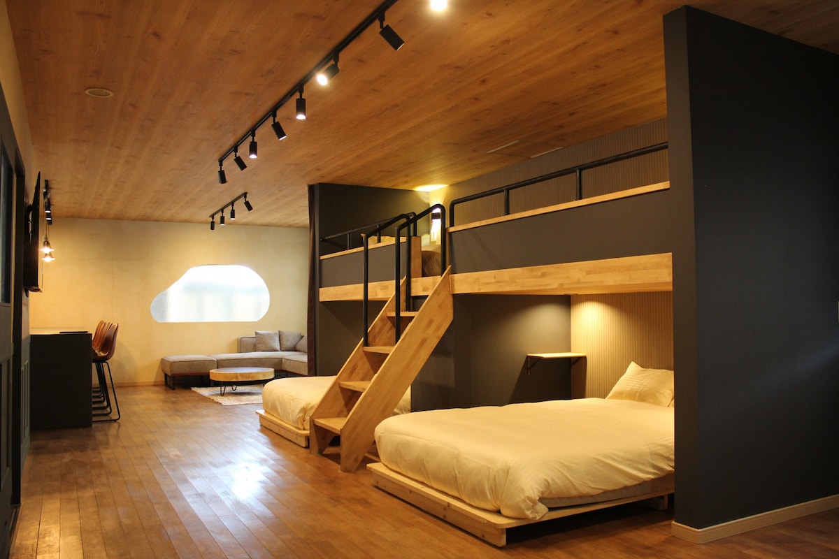 Đây là một khách sạn riêng tư có thể sử dụng sang trọng 80 ㎡ một tầng với chỗ đỗ xe miễn phí cách thành phố mới của trung tâm khoảng 1 km. Bếp được trang bị các tiện nghi cơ bản như tủ lạnh, lò vi sóng và dụng cụ nấu ăn.Ngoài ra còn có các cửa hàng ramen, izakayas, quán cà phê và siêu thị nổi tiếng gần đó, thuận tiện cho việc tham quan và lưu trú dài hạn. Tuyệt vời cho gia đình hoặc chuyến đi theo nhóm! Được thiết kế với chủ đề là một nơi để tận hưởng các cuộc trò chuyện với gia đình và bạn bè của bạn, với rất nhiều không gian sống.Một quầy ăn lớn và một phòng tắm có bồn tắm sẽ giúp bạn nghỉ ngơi sau chuyến đi của mình. Đặc điểm phòng Không gian rộng rãi ☆80 ㎡☆ ☆20m ² phòng khách, phòng ăn, nhà bếp☆ ☆Giường tầng (2 x giường đôi, 2 x giường đơn)☆ Thời gian lưu trú dài thoải mái với ☆nhà bếp, máy giặt và máy sấy☆ [Điểm đề xuất] Tuyệt vời cho cha mẹ và con cái: sự yên tâm, cha mẹ thư giãn Thuận tiện cho việc tham quan: Lâu đài Kumamoto 17 phút đi bộ, trung tâm thành phố 15 phút đi bộ Khu vực Shinmachi lịch sử: quán cà phê retro và hương vị địa phương