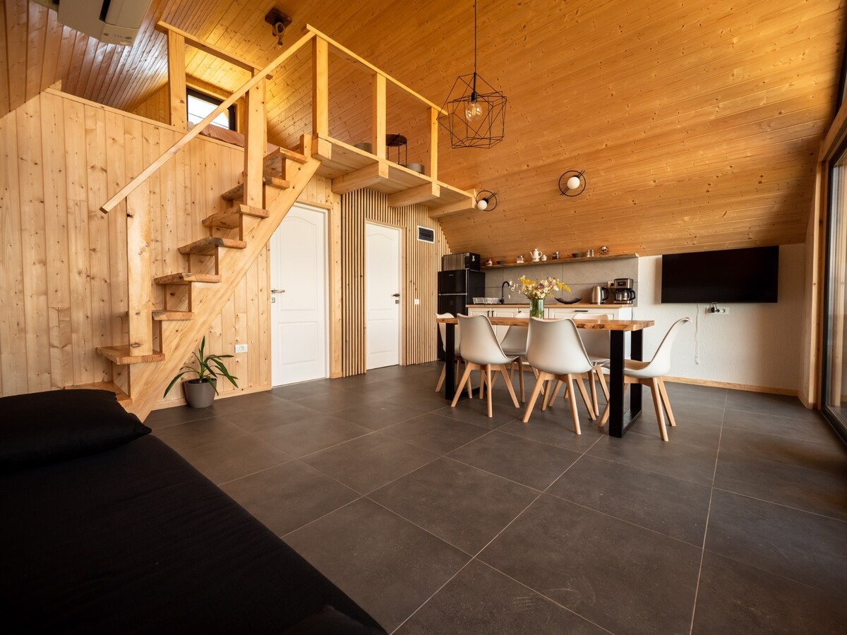 Nhà nghỉ thôn dã có khu vực sinh hoạt đẹp và bếp đầy đủ tiện nghi, cũng như lò sưởi. Nó cực kỳ quyến rũ, một nơi hoàn hảo để tận hưởng ngọn núi. Bên ngoài có một sân trong đẹp với sân thượng ngoài trời và khu vực sảnh cho khách, tiệc nướng ngoài trời. Một dòng suối đáng yêu chảy qua chỗ ở. Ngoài ra, còn có sân chơi cho trẻ em, 2 võng, xích đu và khu vực thư giãn cho người lớn - bể sục nước nóng (được trả thêm tiền theo yêu cầu). Đây là một nơi hoàn hảo cho một kỳ nghỉ tuyệt vời.
