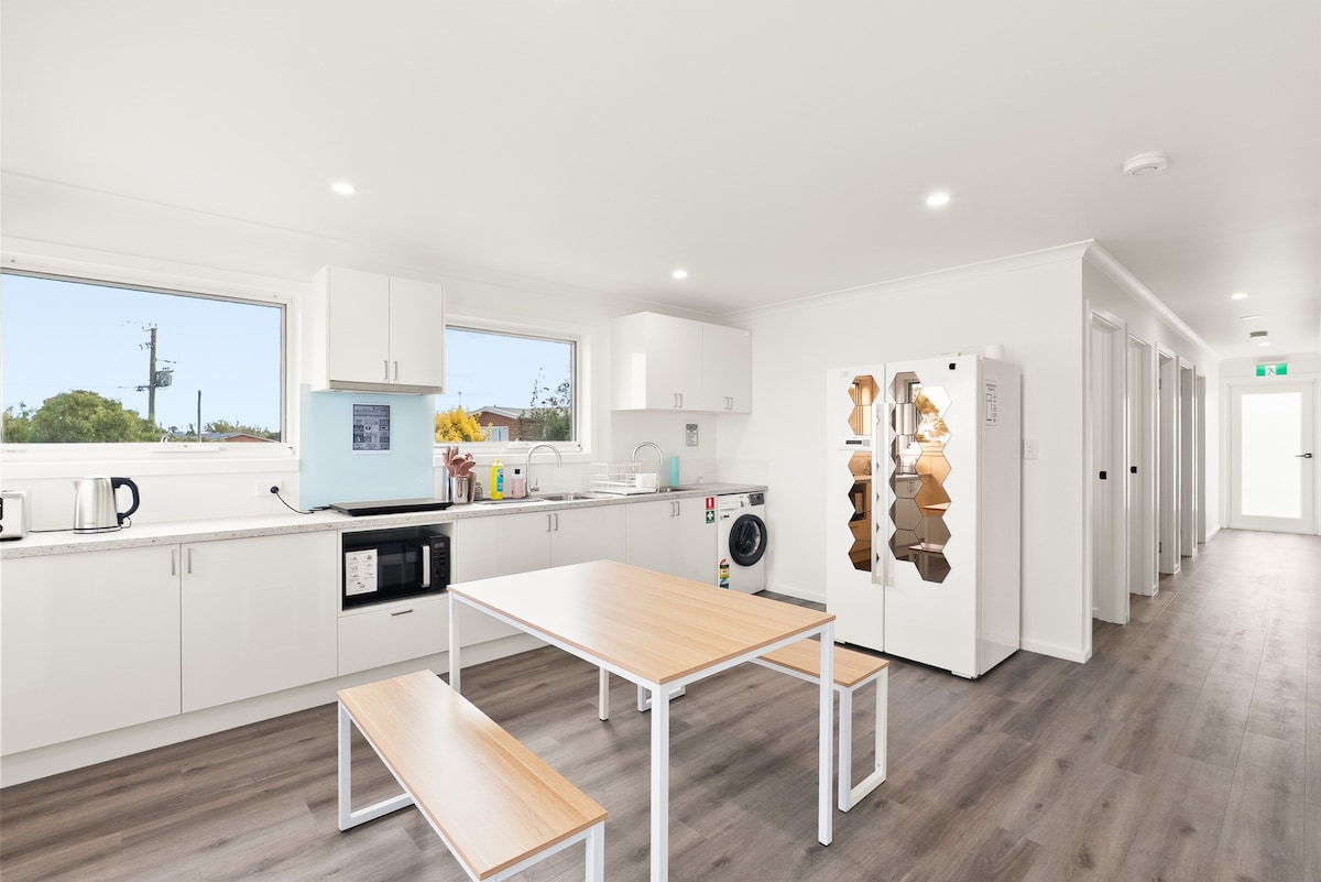 Nhà ba phòng ngủ với phòng tắm lớn và nhà vệ sinh riêng ở vị trí trung tâm gần các cửa hàng, điểm tham quan du lịch, bãi biển và đường dành cho xe đạp leo núi. Ngôi nhà ấm cúng với lò sưởi bằng gỗ để sưởi ấm vào những đêm đông lạnh, nội thất đẹp, thân thiện với trẻ em và vật nuôi, tiện nghi giặt ủi trong phòng giặt lớn, phòng ăn và phòng khách riêng biệt. Nằm cách Spirit of Tasmania 5 phút lái xe ngắn. Bánh ciabatta tươi được giao vào buổi sáng theo yêu cầu. Có thể yêu cầu đốt củi để sưởi ấm nhà theo yêu cầu.