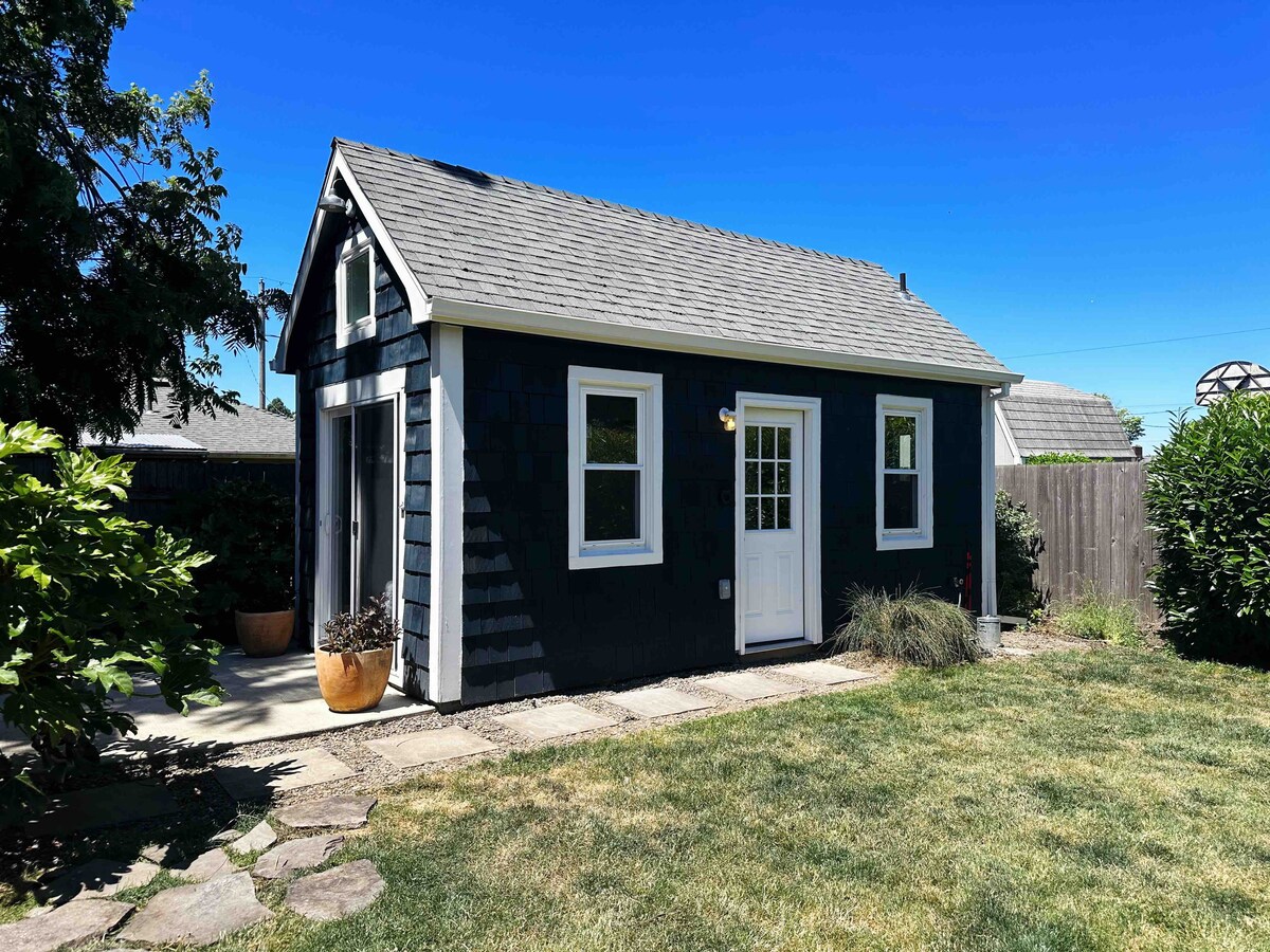Welcome to our Guesthouse— a fully-detached ADU tucked into the fenced backyard of our chill NoPo home. Enjoy the quiet privacy, complimentary Stumptown coffee, dog treats, heated bidet + garden patio. ✨ Includes a kitchenette, adjustable A/C + heat, fiber WiFi, queen-sized bed plus lots of other thougtful perks. Minutes from I-5 with easy access to all things Portland (downtown, Moda Center, Alberta Arts…) Just 20 mins to PDX! ✈️ Pups very welcome 🐶 Sorry, no cats 😿 More details below ⬇️
