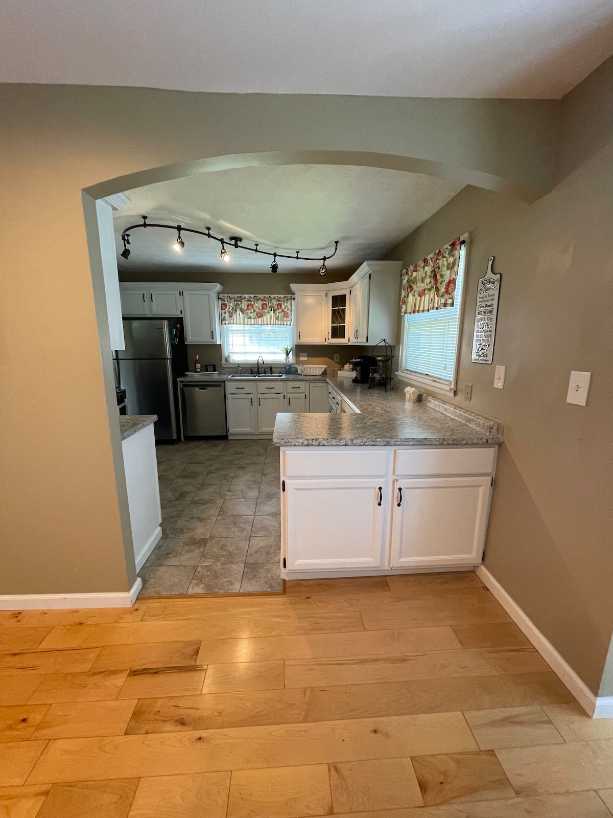 Bring the whole family to this lovely home with modern updates. Enjoy rocking on the front porch or relaxing on the back deck together. Full kitchen with newer appliances, separate laundry room, master bedroom with en-suite bath, spacious sleeping for seven (or eight- pack ‘n play included). About 15 min drive to downtown Knoxville and an hour to the Smoky Mountains, this home is perfect for family getaways or UT Big Orange events and games! We would love to host you in our cozy home in TN!