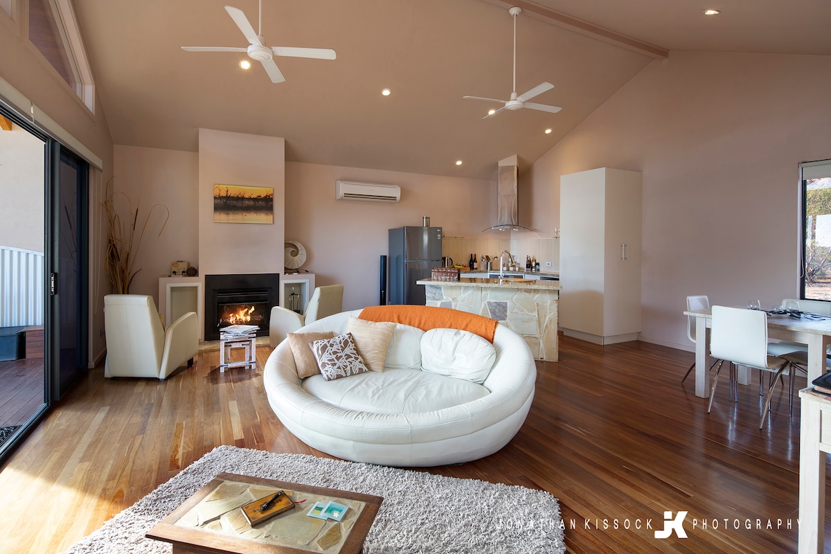 This place is outstanding! Set in a superb location on the picturesque Barmera Golf Course. This impressive executive home is a special place to relax with family and friends. There's lots of space to sit inside and outside. Be amused watching the golfers pass by and chip in and putt on the 7th green. Enjoy a round or two of golf yourselves.