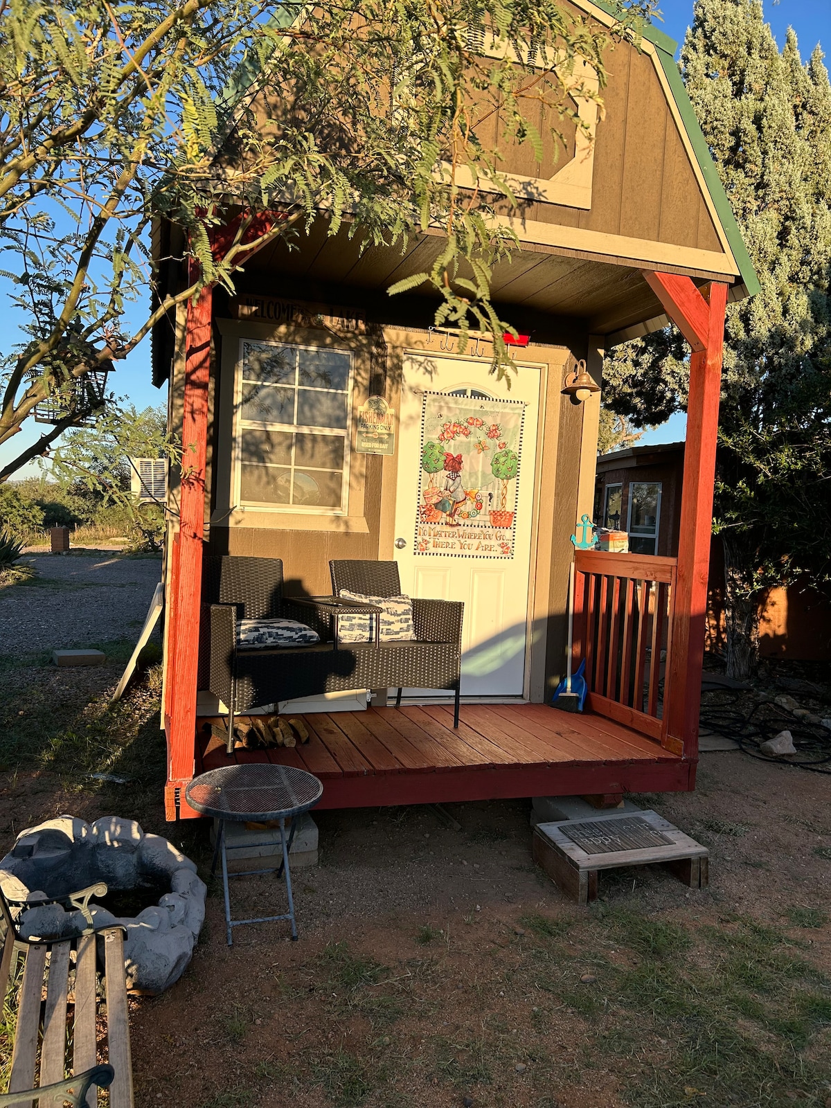 Một nơi nghỉ ngơi rộng rãi nép mình giữa những cây sa mạc trong khung cảnh hơi thở của dãy núi Dragoon. Phòng khách, nhà bếp, phòng ăn, phòng tắm và không gian phòng ngủ. 12 feet x 32 feet sân hiên có mái che cho phép sinh hoạt trong nhà/ngoài trời. Âm thanh duy nhất bạn có thể nghe thấy là âm thanh của sói đồng cỏ và những người bạn sa mạc khác. Có một kính viễn vọng có sẵn để ngắm bầu trời đêm tuyệt vời. Chúng tôi cũng có một hố lửa trên mặt đất để nướng kẹo dẻo và tận hưởng những ngọn núi vào ban đêm.