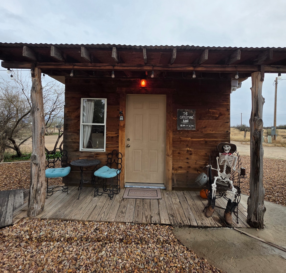 Charming cabin in a rustic western town setting.
