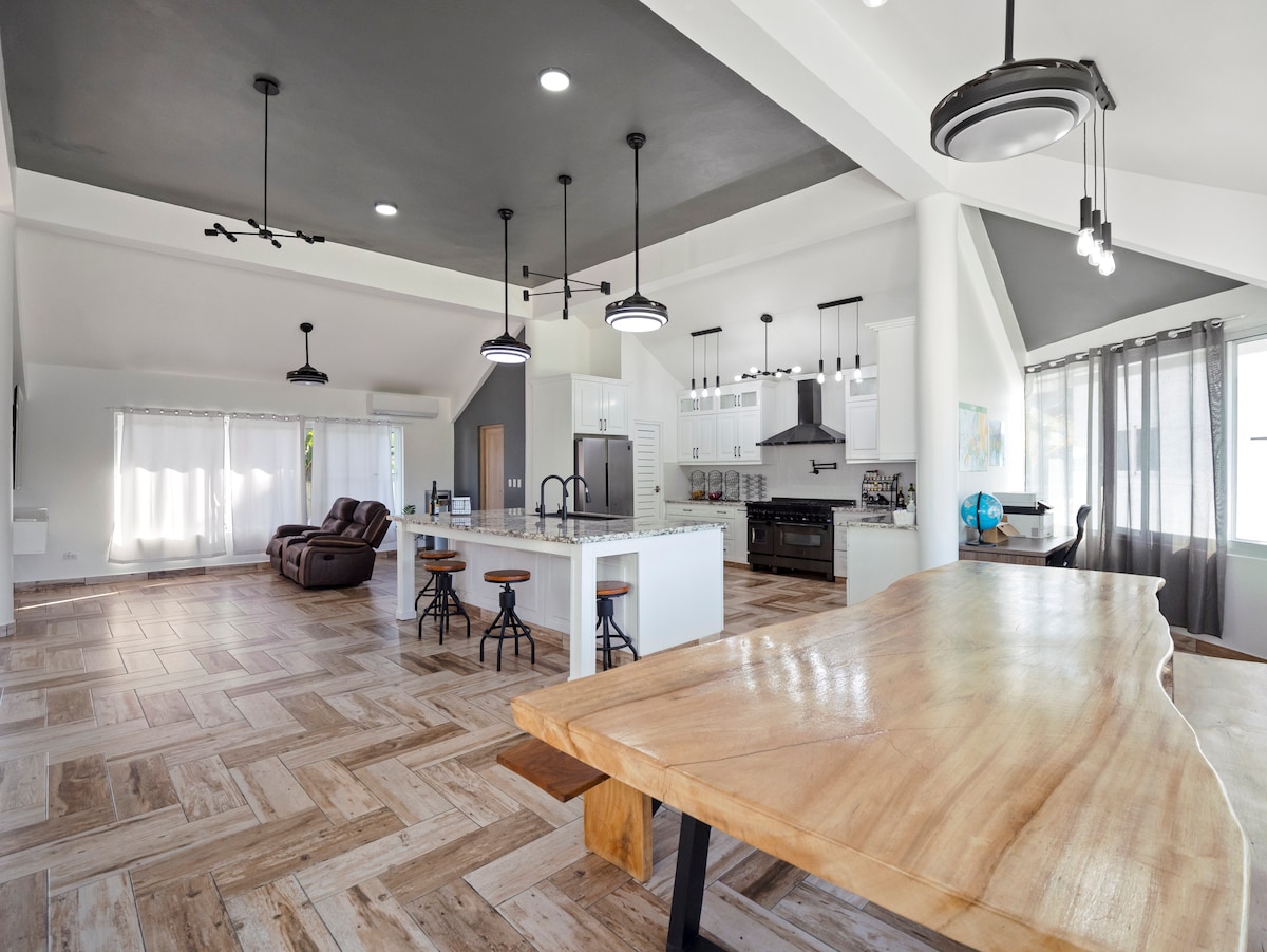 Nằm cách Cabarete 15 phút về phía Bắc, biệt thự này là một giấc mơ. Với 5 phòng ngủ và 7 phòng tắm, khách sẽ có nhiều không gian để thư giãn. Biệt thự được trang bị Hệ thống lọc nước sạch, Điều hòa không khí, Internet tốc độ cao, TV thông minh 55", Nước nóng, Dịch vụ vệ sinh hàng ngày, Đầu bếp cho bữa sáng và An ninh 24 giờ. Mọi thứ đã được cân nhắc để tạo ra một nơi nghỉ ngơi hoàn hảo. Trải nghiệm những gì Cabarete cung cấp với thời gian lưu trú tại biệt thự đầy phong cách của chúng tôi.