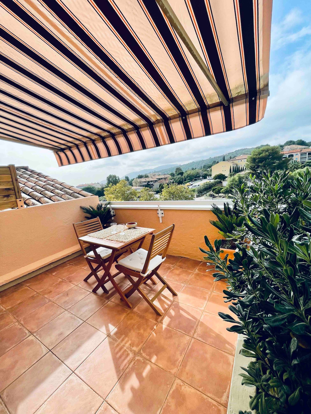 Sân thượng Tropezienne của tôi với tầm nhìn toàn cảnh.