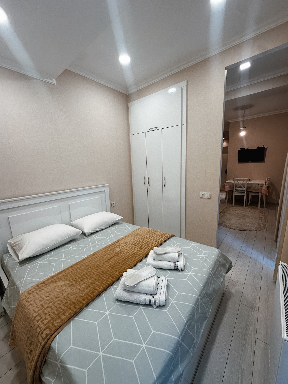 ✨ Căn hộ rộng rãi 120 m2 cho tối đa 8 khách – lý tưởng cho các gia đình và các nhóm. 3 phòng ngủ, phòng khách lớn với giường sofa, 2 phòng tắm, WiFi nhanh và tự nhận phòng. Nhà bếp đầy đủ tiện nghi, TV, yên tĩnh và thoải mái ở Kutaisi. Vị trí đắc địa được bao quanh bởi các cửa hàng, nhà thuốc và nhà hàng để thuận tiện tối đa. Trạm xe buýt ngay trước tòa nhà cung cấp kết nối nhanh đến trung tâm thành phố và sân bay ✈️ (khoảng 20 phút). Nằm 📍 ở tầng 2🛗 Không có thang máy.