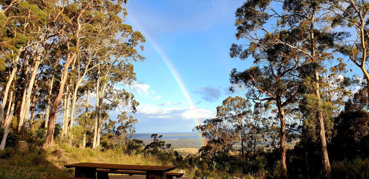Relax in a peaceful bush setting & connect with nature. This small off grid cabin is situated on a 100 acre property located on Freycinet Peninsula, close to Friendly Beaches, Moulting Lagoon & Freycinet National Park. The space is clean, cosy & comfortable with queen bed, kitchenette & bathroom. Perfect for one or a couple. Unwind from the days adventure with the gentle sounds of nature, local bird life & ocean swell.. Watch the eagles return home as the sun sets and the stars come out.