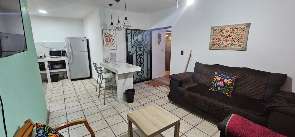 Căn hộ riêng lý tưởng cho các chuyến đi nghỉ ngơi, du lịch và công tác. Nó có khu vườn ngoài trời. Nó có một vị trí tuyệt vời cách đó nửa dãy nhà. Có một công viên, nhà hàng và cửa hàng tạp hóa trong khoảng cách vài phút đi bộ; 5 phút đi xe, Đại học Colima, đơn vị thể thao, không gian thương mại, bệnh viện và khu phức hợp hành chính. Dịch vụ Disney+ và Star+.