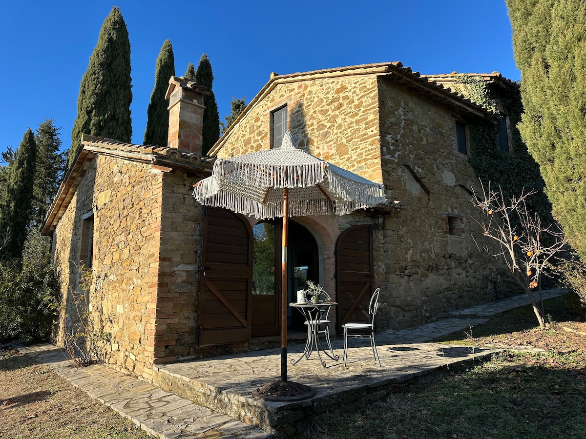 Thoát khỏi những ngọn đồi thoai thoải của Umbria trong ngôi nhà nông trại được nâng cấp này (90 m2 trên 2 tầng) vẫn giữ được nét quyến rũ ban đầu. Ngôi nhà có trần nhà hình vòm dầm cổ điển, hoàn thiện bằng đá nguyên bản, lò sưởi đốt củi trong nhà, lối vào riêng và sân vườn riêng. Hồ bơi chung có khu vực tiếp khách tắm nắng lớn. Nếu những ngày yêu thích của bạn không còn trống nữa, hãy xem căn hộ màu ngọc lam của chúng tôi. Ngọc lam: https://www.airbnb.com/rooms/plus/9430389.