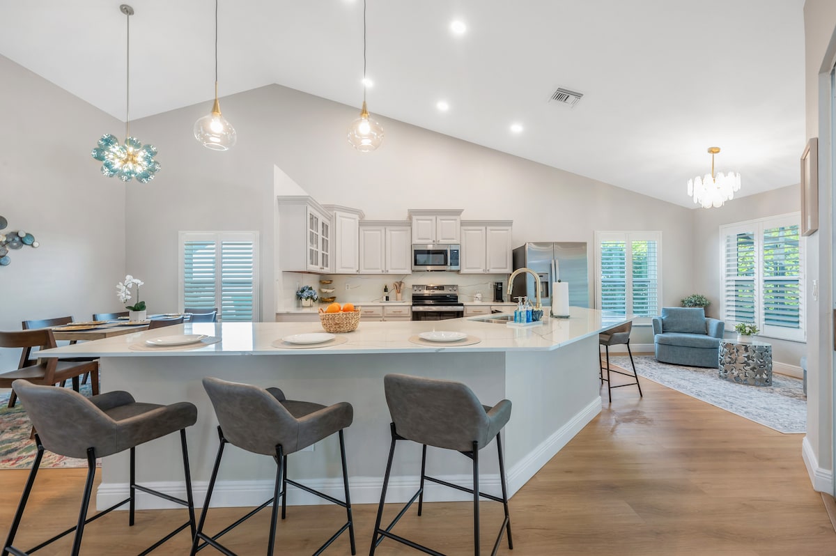Nhắm mắt lại và tưởng tượng những làn gió Vịnh ấm áp, những cây cọ đung đưa nhẹ nhàng và cảm giác thư giãn hoàn toàn ngay khi bạn đến. Chào mừng bạn đến với nơi nghỉ ngơi ven biển riêng của bạn ở Đảo Marco xinh đẹp — một ngôi nhà 3 phòng ngủ, 3 phòng tắm được thiết kế chu đáo, nơi sự thoải mái, phong cách và cuộc sống bãi biển dễ dàng kết hợp với nhau. Thưởng thức cà phê buổi sáng bên hồ bơi, dành buổi chiều đầy nắng bơi trong hồ bơi riêng của bạn và đốt BBQ cho bữa tối thư giãn dưới bầu trời Florida.☀️🕶️🌴