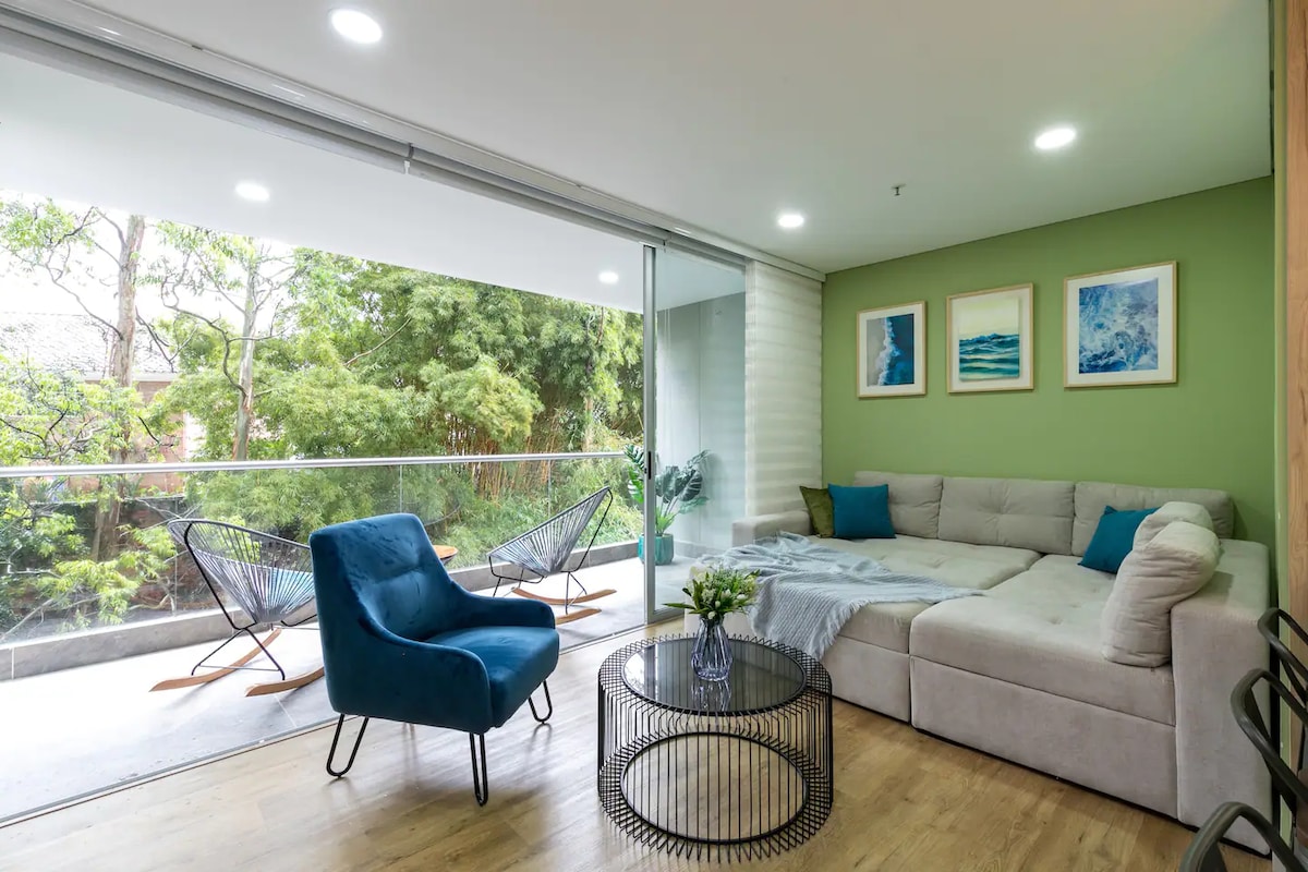 Căn hộ hiện đại 2 phòng ngủ ở Poblado, tầm nhìn đẹp.
