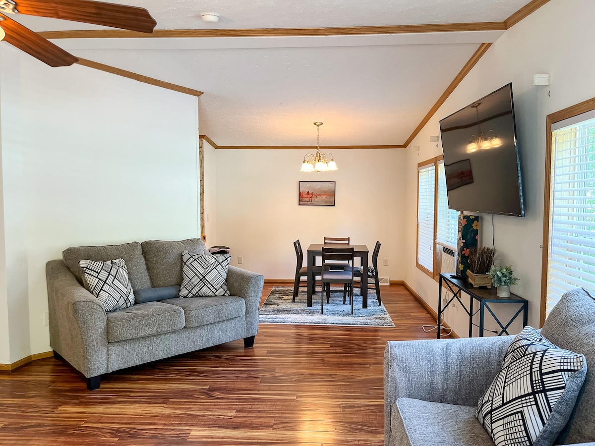 Hãy để tất cả những lo lắng của bạn biến mất trong ngôi nhà nghỉ thôn dã hiện đại được sửa sang lại đẹp mắt này! 3 phòng ngủ, 2 phòng tắm của chúng tôi có thể chứa 8 người lớn trong 2 giường Queen, 2 giường đơn và ghế sofa Queen Sleeper. Thư giãn bên lò sưởi ở phía sau hoặc đưa 2 thuyền kayak 2 người của chúng tôi và tận hưởng hồ vào mùa hè, ghé thăm Catamount Ski Resort hoặc các ngọn núi trượt tuyết khác gần đó vào mùa đông. Bàn ăn lớn, tùy chỉnh có 8 chỗ ngồi thoải mái với rất nhiều không gian để treo, chơi trò chơi, xem phim và hơn thế nữa. Khách phải 25 tuổi mới có thể thuê nhà.