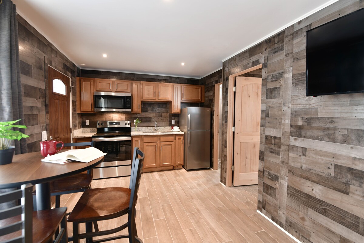 Studio hoàn toàn mới tuyệt đẹp nằm ngay trên Hồ Delton. Dễ dàng đến các cửa hàng và nhà hàng nổi tiếng từ nơi ở quyến rũ này. Tận hưởng dịch vụ cho thuê thuyền kayak và ván chèo miễn phí trong thời gian lưu trú của bạn. Ngoài ra, hãy ngâm mình trong bể bơi 85 độ của chúng tôi. Giải trí hàng đêm bao gồm lửa trại và nhạc sống. Nằm ngay trung tâm của Dells ngay trên Hồ Delton.