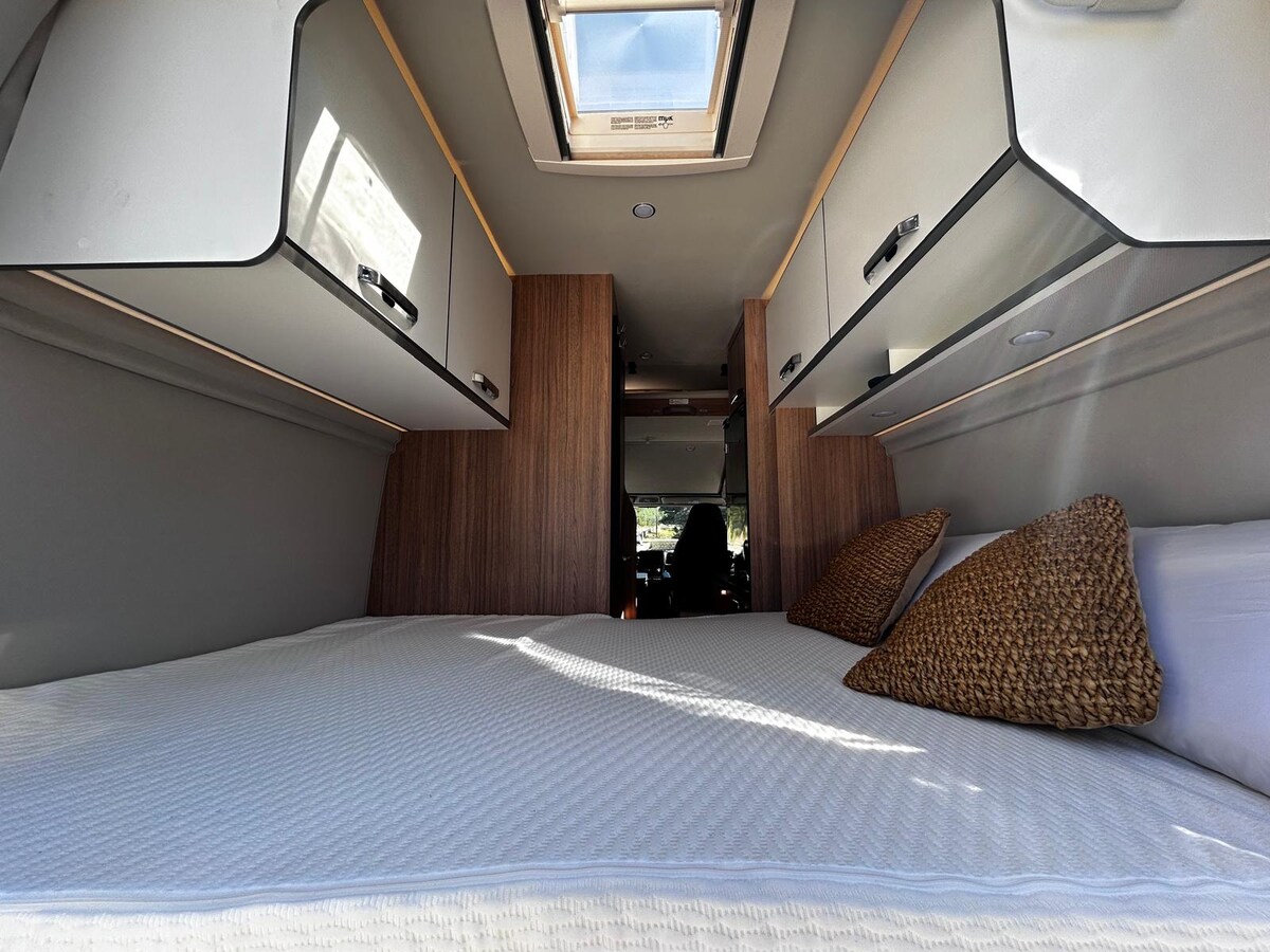 Xe cắm trại có sức chứa cho 4 người. Với 2 giường đôi. Tháng 7 năm 2025. Bạn sẽ cảm thấy như đang ở nhà: Phòng tắm đầy đủ có vòi sen và nhà vệ sinh Nhà bếp; đã bao gồm gas, bồn rửa, tủ lạnh và đồ dùng nhà bếp Giường đôi có kích thước 145x200 cm hoặc 135x195 cm Lưu trữ rộng rãi với tủ chức năng Mái hiên bên và hệ thống chiếu sáng bên ngoài 150km/ngày. (Thêm km € 0,25/km) Pin lithium. Khóa an ninh bên ngoài Thule, để có trải nghiệm tự chủ, hiệu quả và an toàn. BẢO HIỂM: Tất cả các rủi ro và hỗ trợ bên đường.