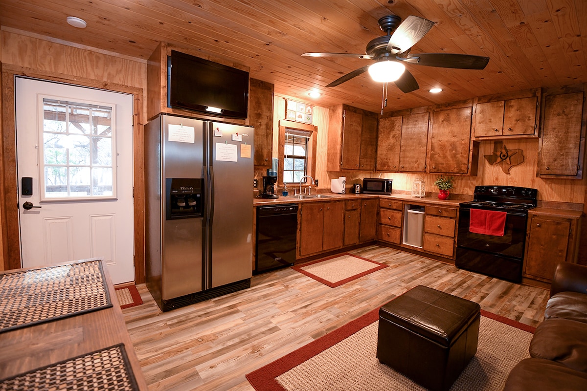 All holiday stays require a 3-night minimum. This cabin is a 900 square foot, 2 bedroom - 2 bathroom unit & sleeps 8. It's centrally located in Concan- close to the River, food, concerts, and fun! Enjoy all the same comforts from home, or unplug and relax. Cabin includes Wifi, Netflix, YouTube TV, an Alexa for music, games, fireplace, BBQ pit, and outdoor fire pit. If you're tired of city lights, sit out on the porch and stargaze!