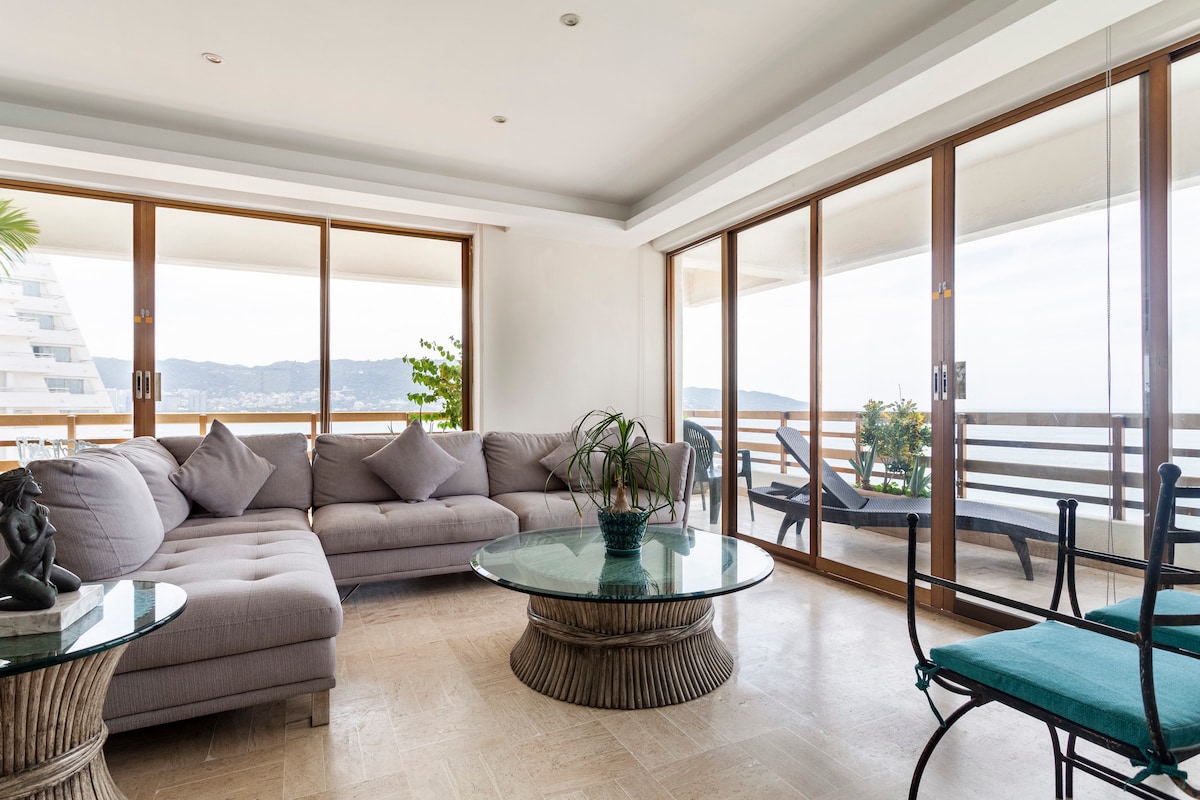 Pent House thân thiện với thú cưng độc đáo ở Acapulco với tầm nhìn 360 độ. Hồ bơi toàn cảnh cho phép bạn thưởng thức chương trình biểu diễn của thợ lặn Quebrada. Khu vực sinh hoạt và ăn uống hoàn toàn mở với sân thượng rộng rãi. Bếp trang bị tiện nghi và ba phòng ngủ thoải mái, mỗi phòng có phòng tắm tương ứng. Trang trí PH theo phong cách mediterrane. Không gian tận hưởng sự thông gió tự nhiên của gió biển mang lại cảm giác tuyệt vời.