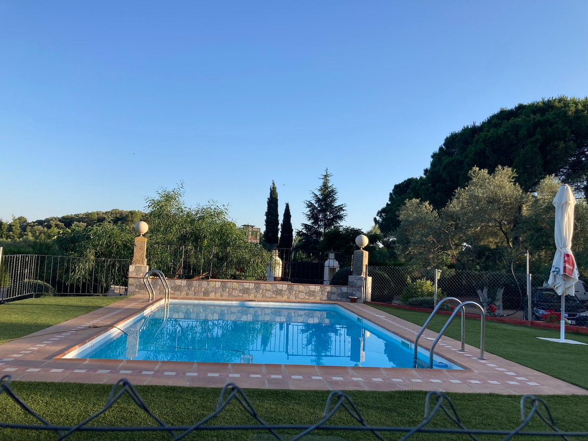 Ngôi nhà lý tưởng cho 16 người, bao gồm 8 phòng ngủ đôi (phòng ngủ chung 6 ở tầng trệt và phòng ngủ 7 ở tầng trên có cầu thang dẫn vào), 4 phòng tắm đều có vòi sen, bãi đỗ xe miễn phí. Phòng ăn lớn có lò sưởi và TV. Hiên nhà ngoài trời, phòng tắm nắng và hồ bơi có hàng rào đầy đủ. Chúng tôi chào đón thú cưng. Wifi miễn phí. Thịt nướng. Bao quanh là ô liu và cây cam. Quà chào mừng bất ngờ và đề xuất cho khu vực này. NGHIÊM CẤM tổ chức tiệc và sự kiện Chỉ sử dụng cho kỳ nghỉ