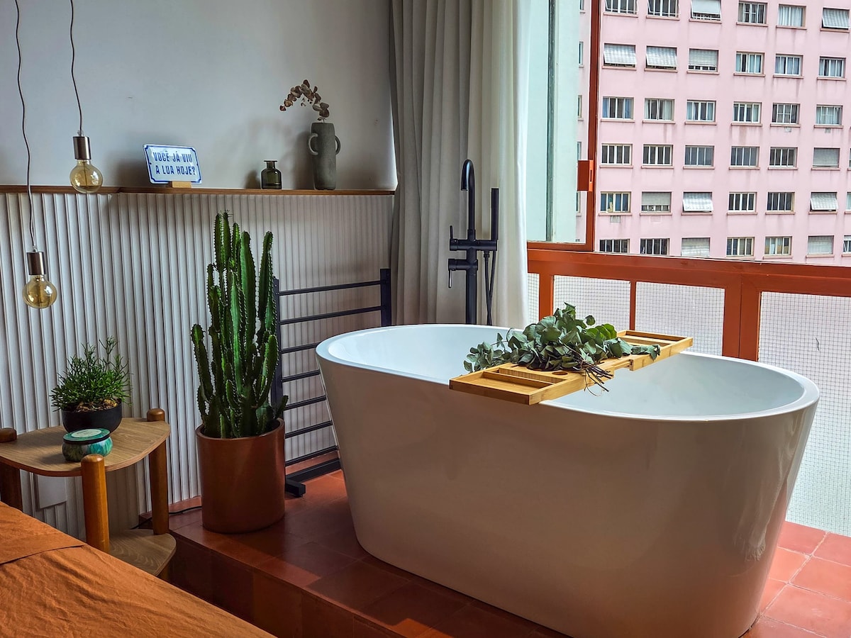 Được thiết kế bởi @yanaina_interiores, studio này trong tòa nhà nổi tiếng nhất của Brazil là một phần của dự án @airbnbnocopan và được thiết kế theo các đề xuất và yêu cầu từ khách và người theo dõi của chúng tôi trong các cuộc khảo sát được thực hiện trên mạng xã hội. Một thiết kế độc đáo làm nổi bật tầm nhìn từ căn hộ tầng 27, có TV 100 inch và bể sục. Bạn có thể xem phim từ giường, bàn ăn hoặc phòng tắm. Không gian này cũng bao gồm điều hòa không khí và internet tốc độ cao (cáp quang).