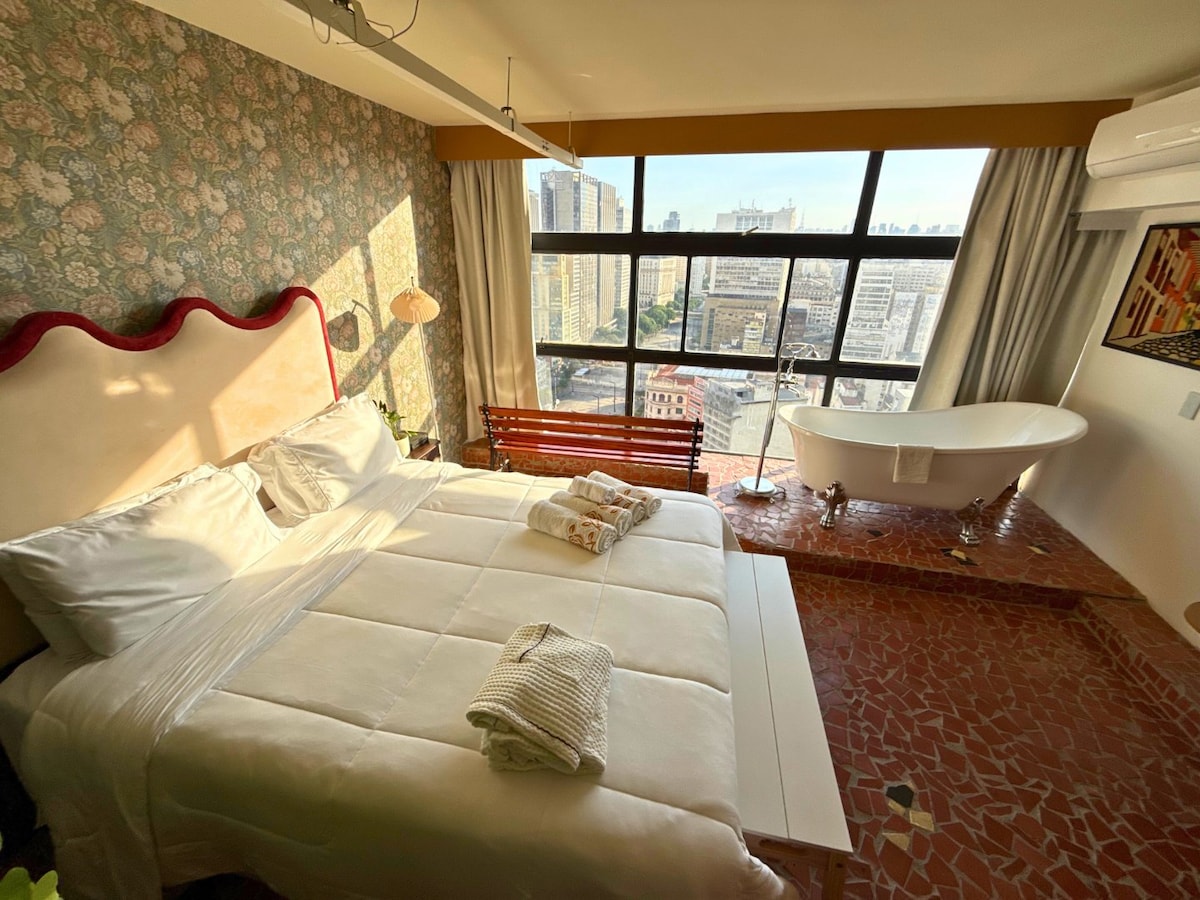 Borogodó Studio được đăng nhập vào Tòa nhà Copan, tòa nhà dân cư nổi tiếng nhất ở Brazil. Trên tầng 20, bạn có tầm nhìn tuyệt vời ra đường chân trời thành phố, nơi bạn có thể tận hưởng từ bên trong bồn tắm được bố trí đặc biệt để ngắm cảnh. Hoặc thậm chí xem phim và phim truyền hình trên màn hình 100 ". Lấy cảm hứng từ các tác phẩm của nghệ sĩ Alfredo Volpi và chứa đầy tác phẩm nghệ thuật của một số nghệ sĩ. Căn hộ này có tầm nhìn hoàn toàn miễn phí, không có màn hình bảo vệ!
