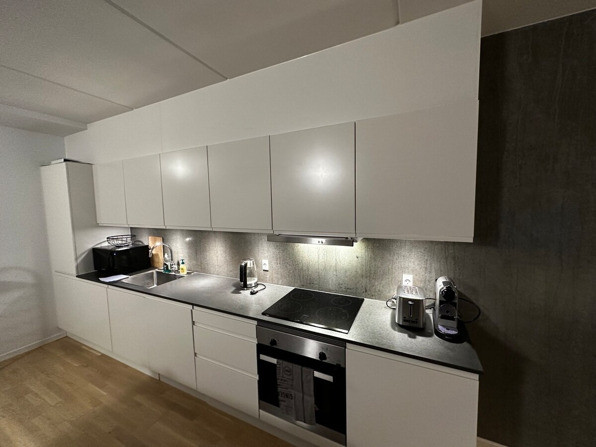 Chỉ cách ga tàu điện ngầm Nuuks Plads 10 phút đi bộ, không gian hiện đại, được trang bị đầy đủ tiện nghi này lý tưởng cho cặp đôi, gia đình hoặc bạn bè. Tận hưởng một khu dân cư yên tĩnh với hai siêu thị ngay bên dưới tòa nhà và đi nhanh đến trung tâm thành phố. Căn hộ có phòng khách với sofa giường, phòng ngủ với giường đôi, bếp đầy đủ tiện nghi (máy rửa chén, máy pha cà phê, máy tạo bọt sữa, máy nướng bánh mì, ấm đun nước) và phòng tắm hiện đại với cả máy giặt và máy sấy. Bạn sẽ cảm thấy như ở nhà!