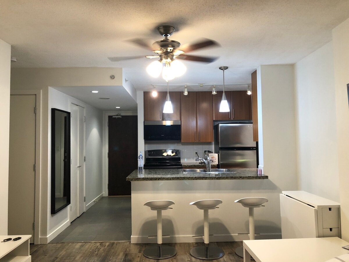 Yaletown 1BR có tầm nhìn, bãi đỗ xe miễn phí và điều hòa không khí