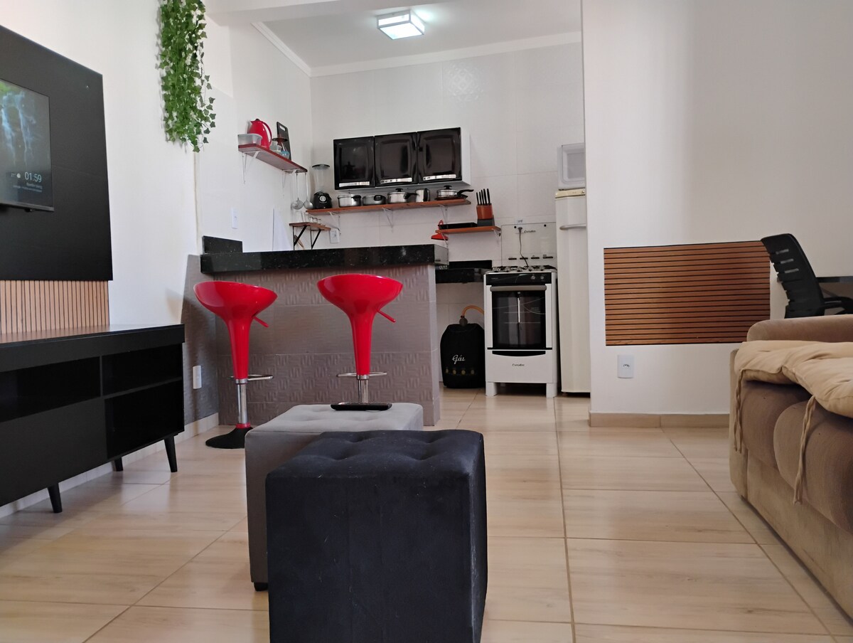Viva uma estadia inesquecível neste apartamento aconchegante e completo, perfeito para famílias ou grupos de amigos. Com 3 quartos (suíte com cama Queen, smart TV e closet, quarto com cama de casal e outro com 2 camas de solteiro), contamos com itens de cama mesa e banhos completos. 2 banheiros, 3 ventiladores, cozinha equipada e mesa para 6 pessoas, Wi-Fi rápido. Vaga coberta em gaveta para 2 carros com portão eletrônico. O apto. Fica no segundo andar com acesso utilizando escadas!