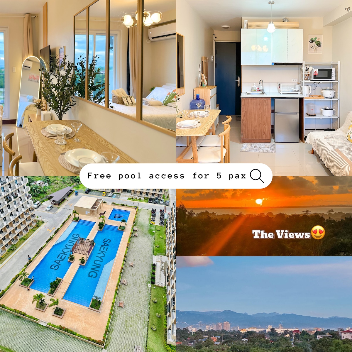 Căn hộ studio thoải mái, dễ tiếp cận và thẩm mỹ gần Sân bay quốc tế Mactan Cebu Căn hộ chung cư 24 m2 có ban công Hướng biển với giường cỡ Queen • có thể chứa 4-6 khách • nệm xốp bổ sung và chăn bổ sung được cung cấp • HỒ bơi miễn phí cho 2 người, chỗ đỗ xe có thu phí bên trong Phòng tắm có: • vòi sen, máy sưởi, bồn rửa • dầu gội đầu | dầu xả | sữa tắm được cung cấp • khăn tắm Giải trí • Kết nối internet 200 mbps • Máy chiếu thông minh 4K 1080p với âm thanh vòm • karaoke mini • Thẻ và trò chơi cờ bàn