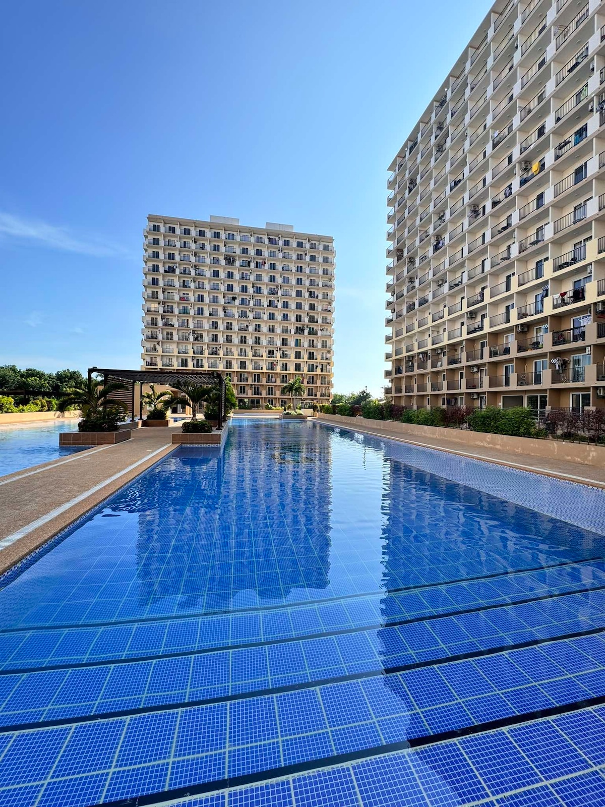 Thư giãn trong căn hộ chung cư hoàn toàn ấm cúng, hiện đại và sôi động này nằm thuận tiện gần Sân bay Quốc tế Mactan. Nơi gần với mọi thứ như nhà hàng, quán cà phê, cửa hàng giặt ủi, trung tâm thương mại và siêu thị. - Cách Sân bay Mactan ở Cebu 3-5 phút - Hai giường đôi 48x75 inch - Kết nối WI-FI lên tới 100 mbps - Netflix miễn phí - Dụng cụ nấu ăn và dụng cụ nấu ăn hoàn chỉnh - Sử dụng hồ bơi miễn phí cho tối đa 3 khách (VUI LÒNG ĐỌC MÔ TẢ CHỖ Ở BÊN DƯỚI TRƯỚC KHI ĐẶT PHÒNG)