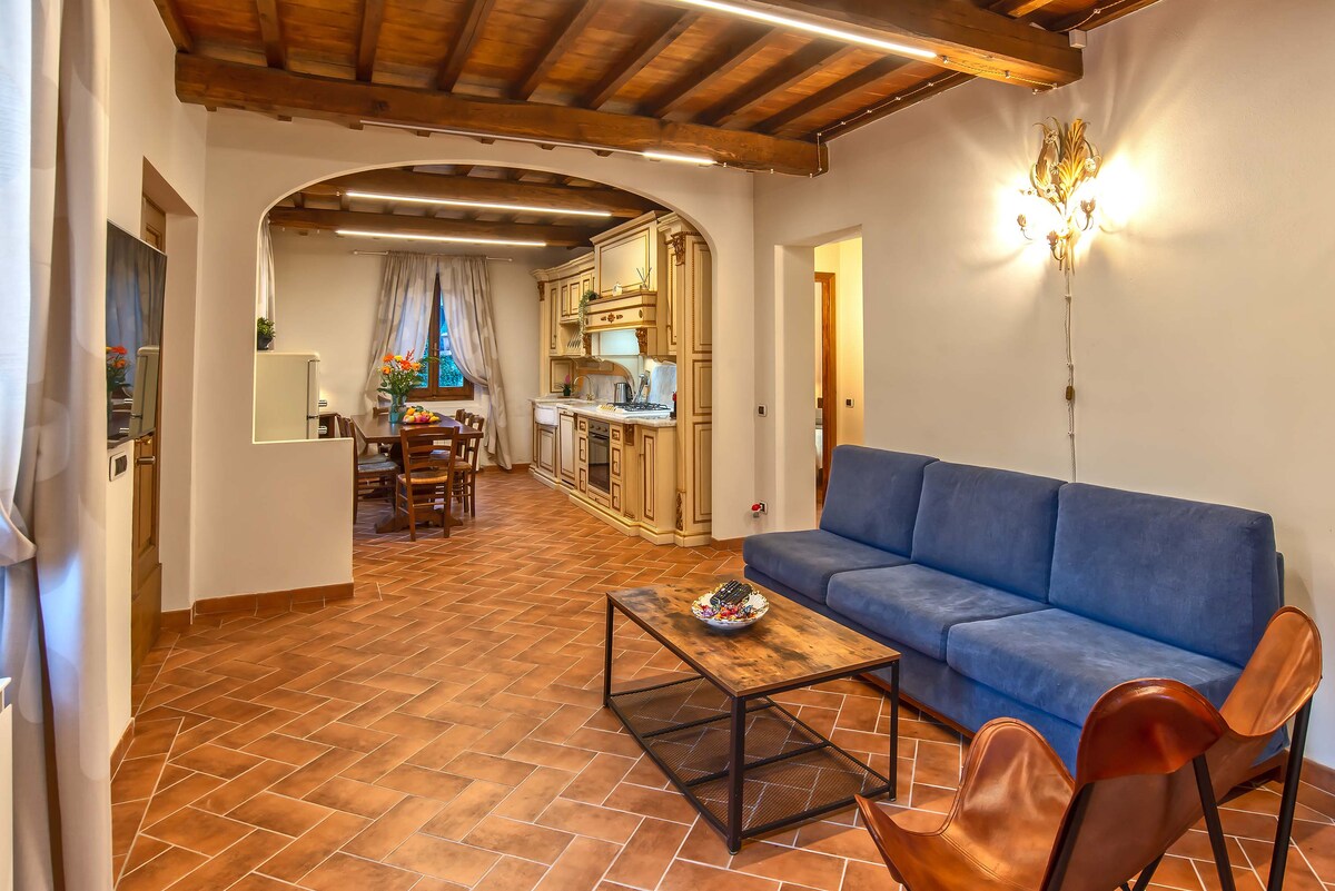 A unique experience in a historical dwelling located in the Chianti region. This medieval castle is situated in a strategic position, surrounded by the major Tuscan touristic attractions. The suite is at the entrance floor level: double bedroom with bathroom, sofa bed for two people, kitchenette, fireplace.